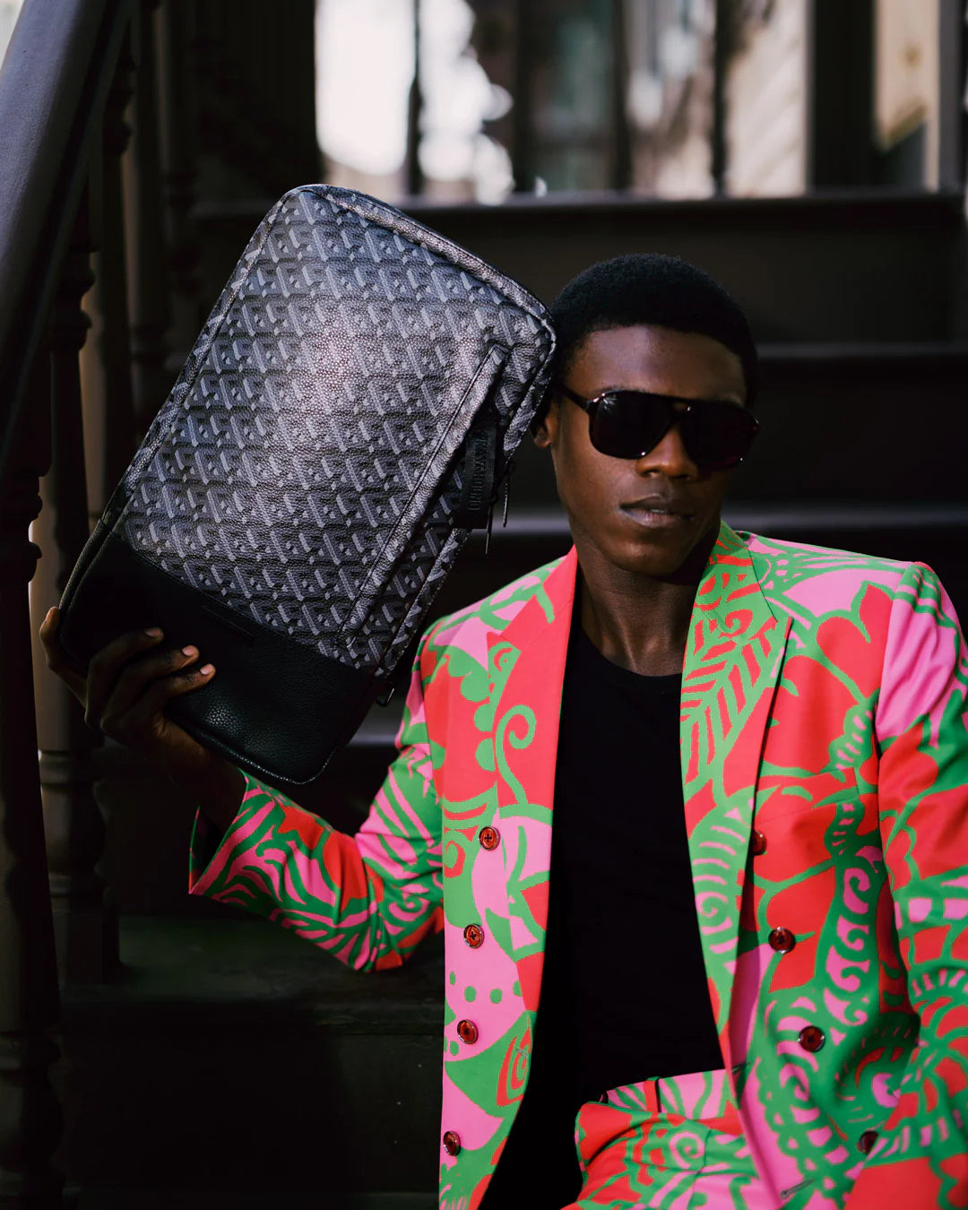 Ergonomic mesh back padding, Whip stitch detailing, adjustable straps, 2 exterior pockets, features a whip stitch luggage tag, embossed zipper pulls