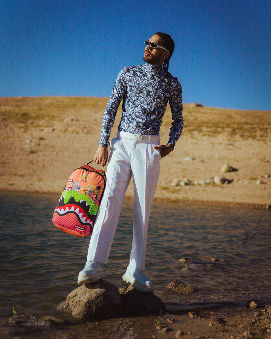 Dimensions: 18″ x 6″ x 11.5″ • Front zipper pocket • Side pockets • Zippered Stash pocket • Separate velour sunglass compartment • Ergonomic mesh back padding • Adjustable Straps for custom sizing • Gold zippers with metal hardware • Metal « Sprayground Authentic » badge • Slide through back sleeve connects to carry-on luggage to free your hands
