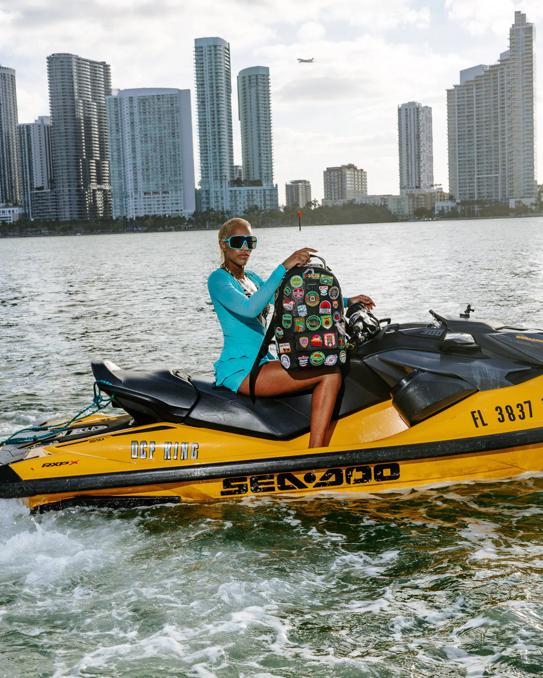 Dimensions: 18″ x 6″ x 11.5″ • Front zipper pocket • Side pockets • Zippered Stash pocket • Separate velour sunglass compartment • Ergonomic mesh back padding • Adjustable Straps for custom sizing • Gold zippers with metal hardware • Metal « Sprayground Authentic » badge • Slide through back sleeve connects to carry-on luggage to free your hands