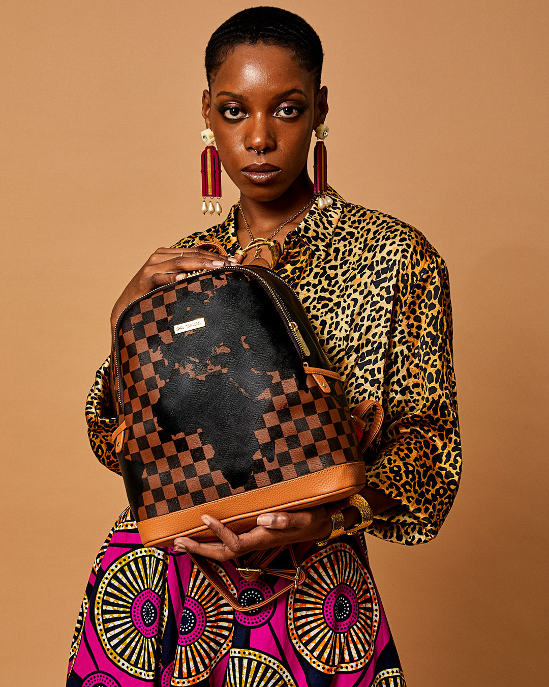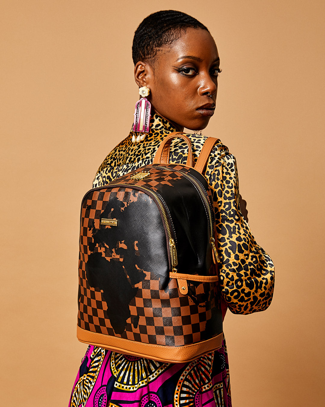 Dimensions: 10″ x 5″ x 11.5″ • Two large main zippered compartments • Side pockets • Zippered Stash pocket • Adjustable straps for custom sizing • Gold zippers with metal hardware