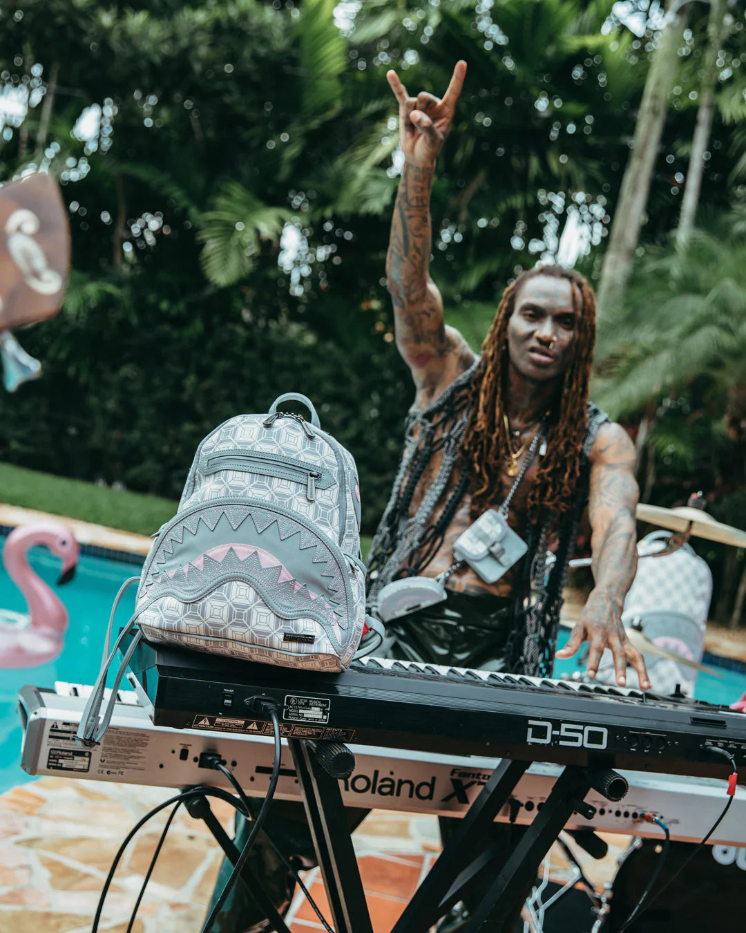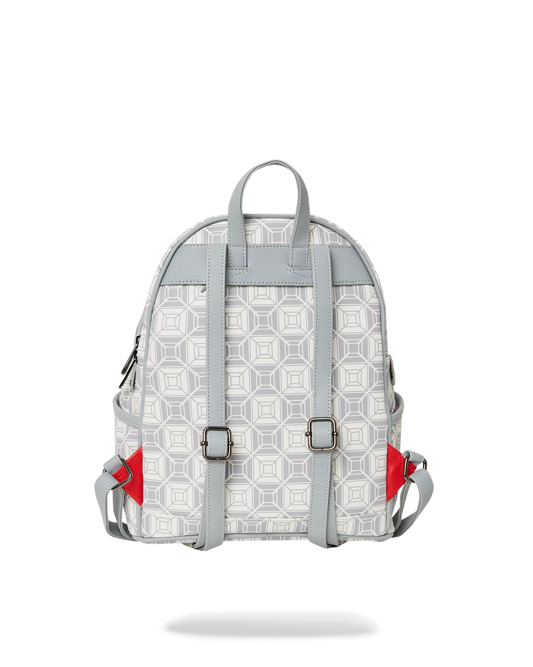 Dimensions: 10″ x 5″ x 11.5″ • Two large main zippered compartments • Side pockets • Zippered Stash pocket • Adjustable straps for custom sizing • Gold zippers with metal hardware