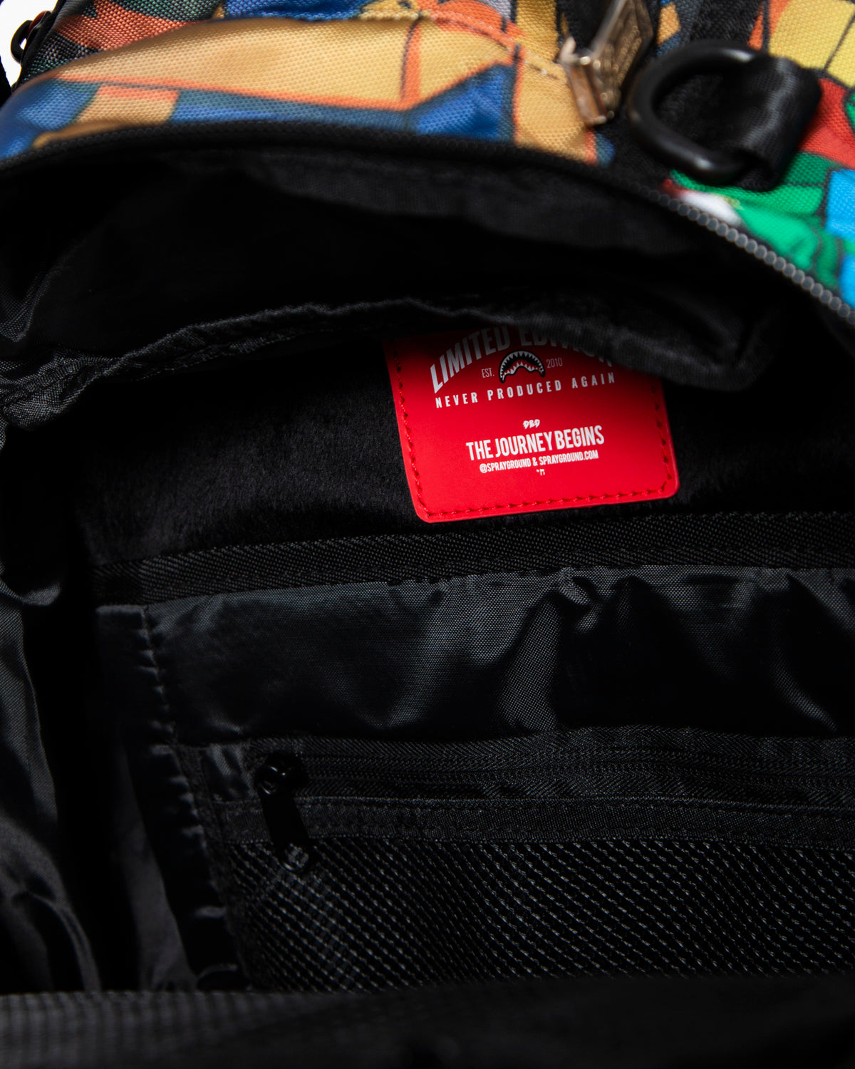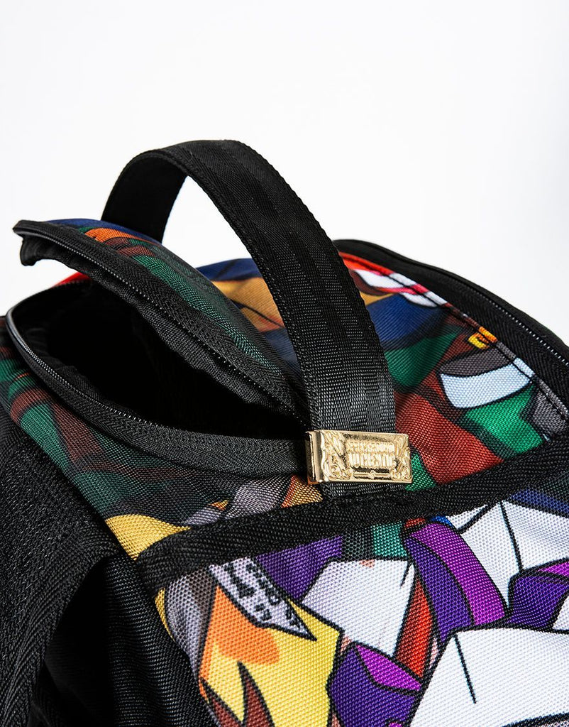 Dimensions: 18″ x 6″ x 11.5″ • Front zipper pocket • Side pockets • Zippered Stash pocket • Separate velour sunglass compartment • Ergonomic mesh back padding • Adjustable Straps for custom sizing • Gold zippers with metal hardware • Metal « Sprayground Authentic » badge • Slide through back sleeve connects to carry-on luggage to free your hands