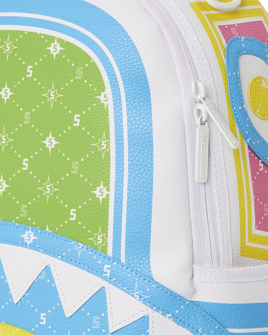 Dimensions: 18″ x 6″ x 11.5″ • Front zipper pocket • Side pockets • Zippered Stash pocket • Separate velour sunglass compartment • Ergonomic mesh back padding • Adjustable Straps for custom sizing • Gold zippers with metal hardware • Metal « Sprayground Authentic » badge • Slide through back sleeve connects to carry-on luggage to free your hands