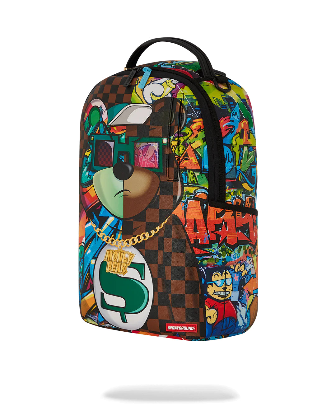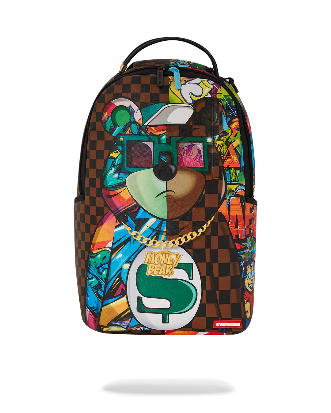 Dimensions: 18″ x 6″ x 11.5″ • Front zipper pocket • Side pockets • Zippered Stash pocket • Separate velour sunglass compartment • Ergonomic mesh back padding • Adjustable Straps for custom sizing • Gold zippers with metal hardware • Metal « Sprayground Authentic » badge • Slide through back sleeve connects to carry-on luggage to free your hands