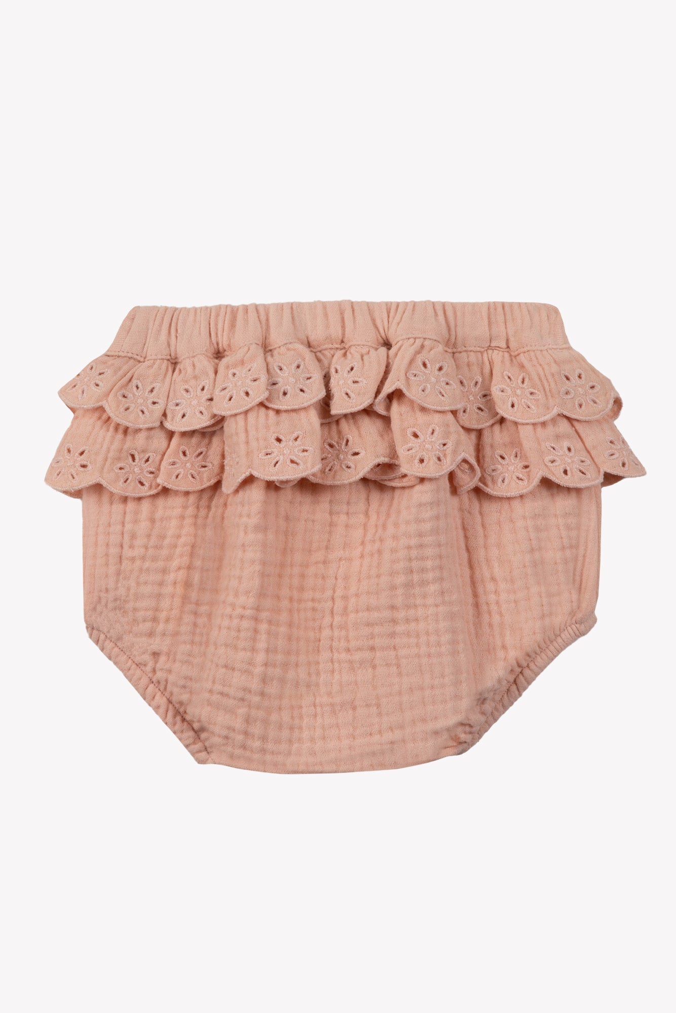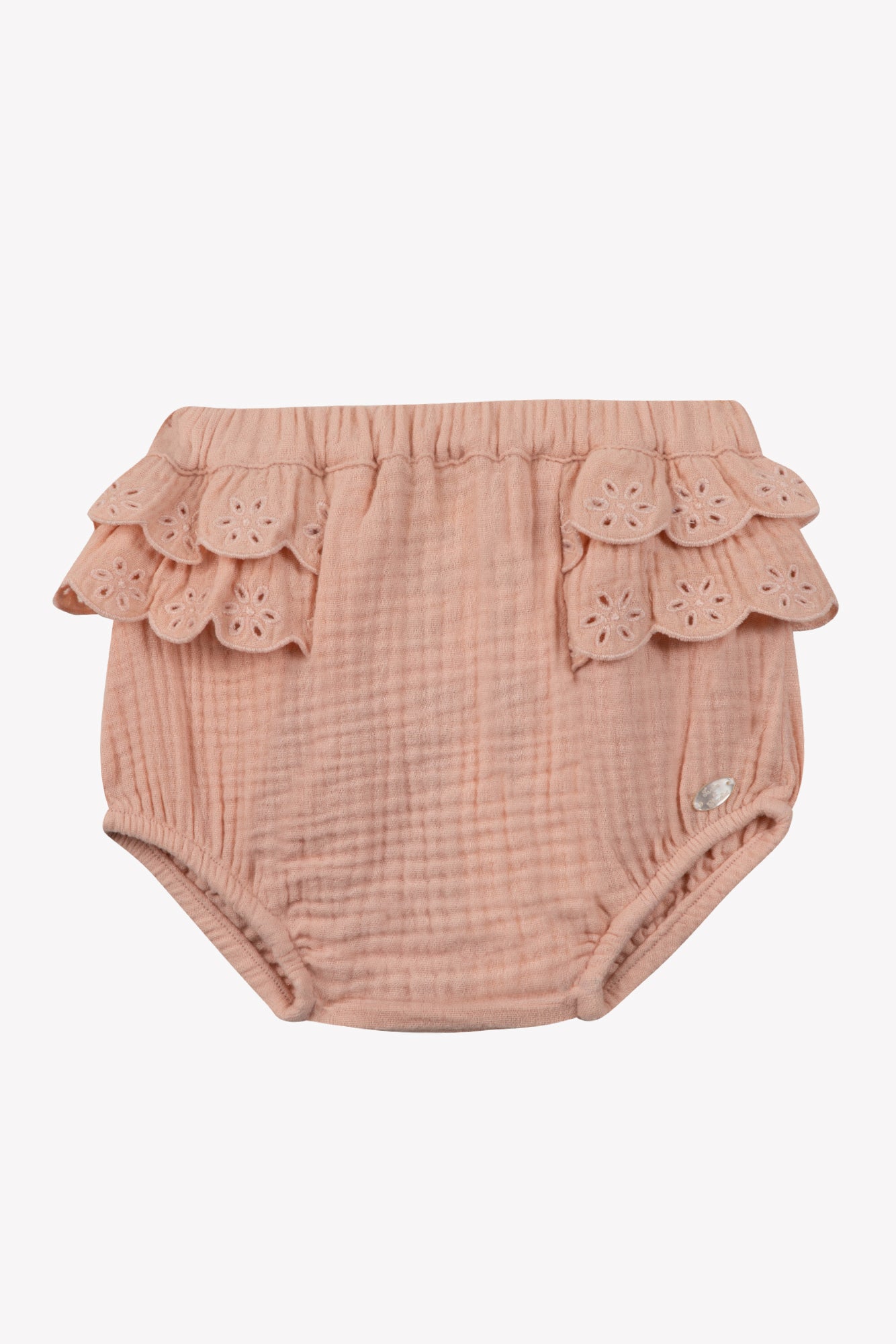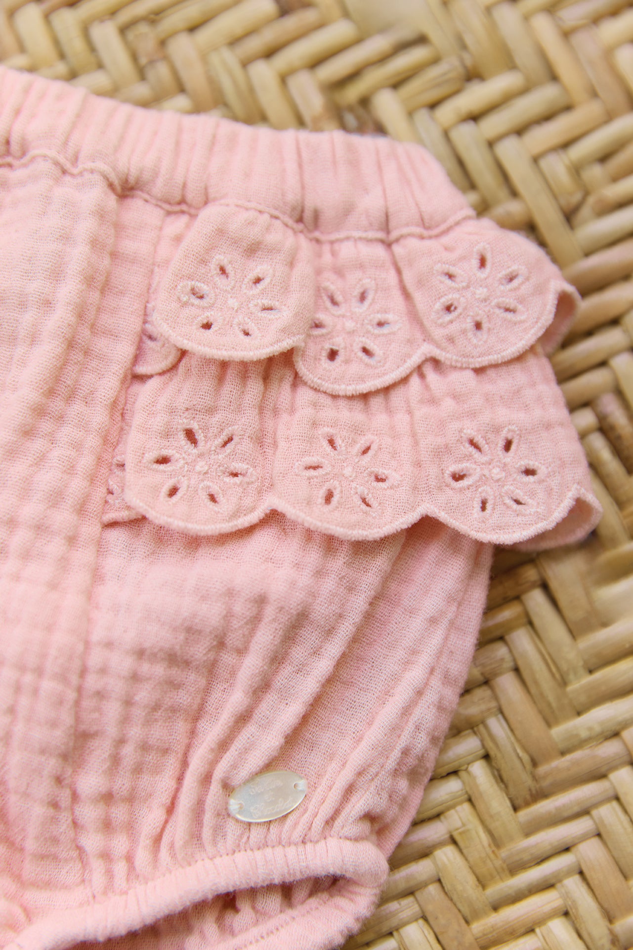 Ce ravissant bloomer en teinte saumon est sublimé par des broderies anglaises, ajoutant une touche de charme classique aux tenues de votre petite princesse. Conçu pour offrir confort et douceur, il est parfait pour les journées ensoleillées. Idéal pour compléter un look élégant, ce bloomer se marie à merveille avec un body délicat, pour une tenue pleine de fraîcheur. CA26000-33