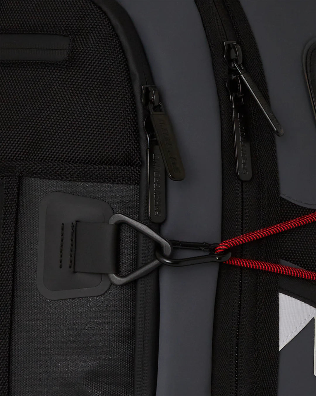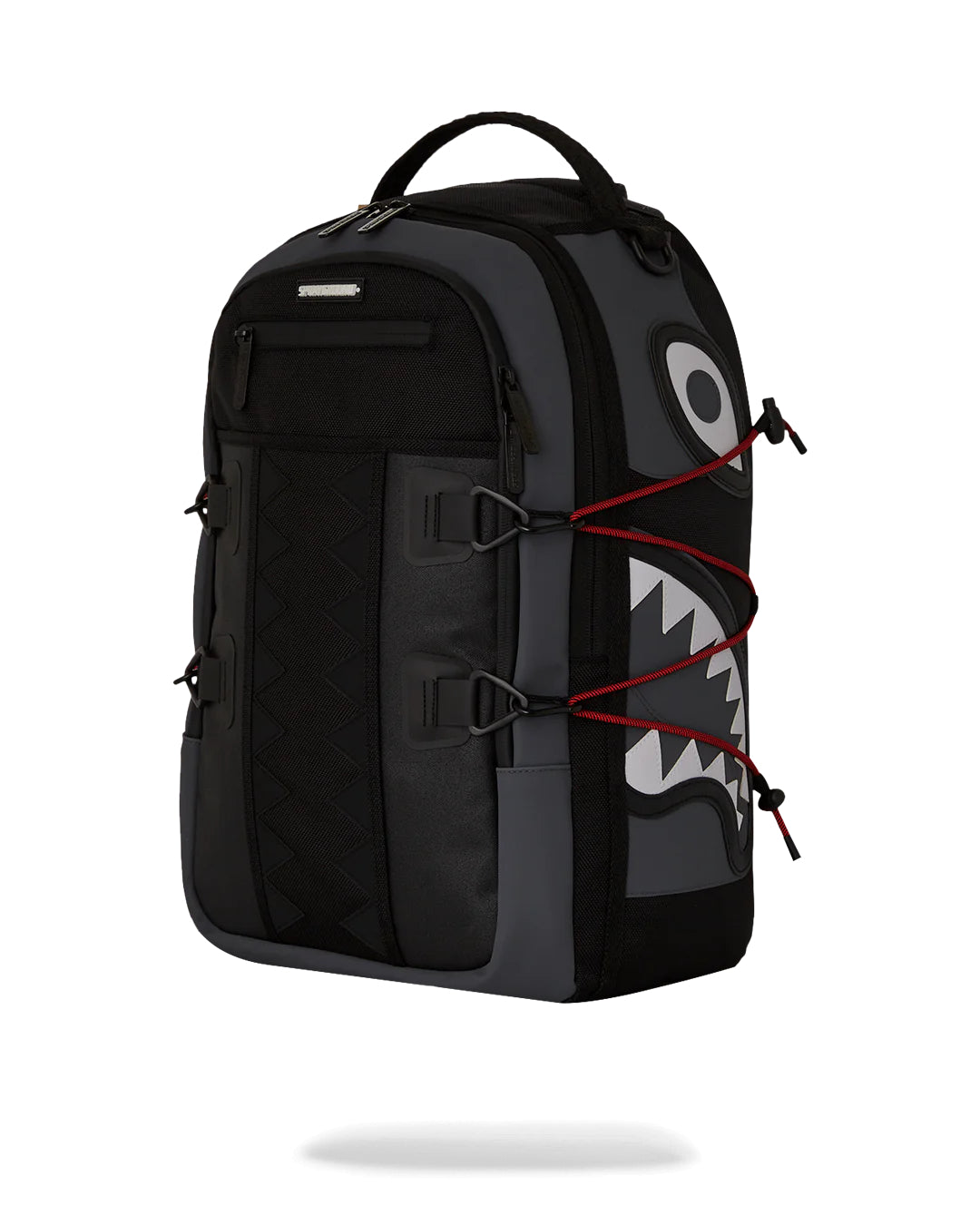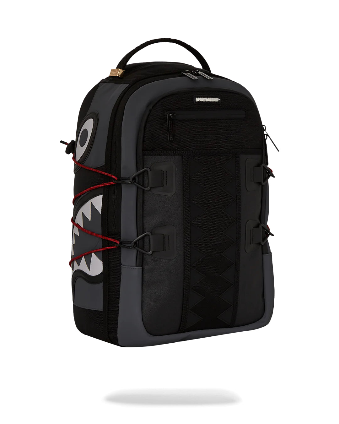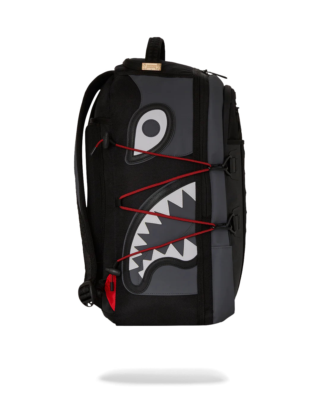 Deep front pocket, extra front pocket, paracord detailing on the sides, rubber Sharkmouth and eye details, 2.5″ deeper than a normal bag