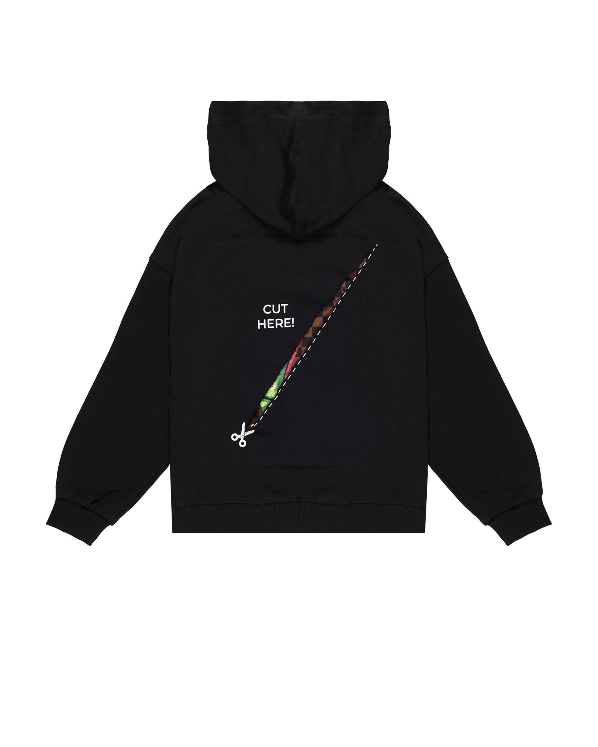 By cutting to your liking inside the box, following the guidelines, an all over brown checkered pattern printed part and the placed money bear print will appear.