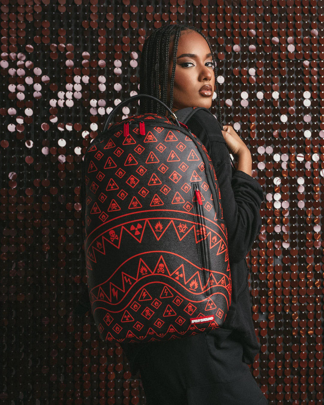 Dimensions: 18″ x 6″ x 11.5″ • Front zipper pocket • Side pockets • Zippered Stash pocket • Separate velour sunglass compartment • Ergonomic mesh back padding • Adjustable Straps for custom sizing • Gold zippers with metal hardware • Metal « Sprayground Authentic » badge • Slide through back sleeve connects to carry-on luggage to free your hands
