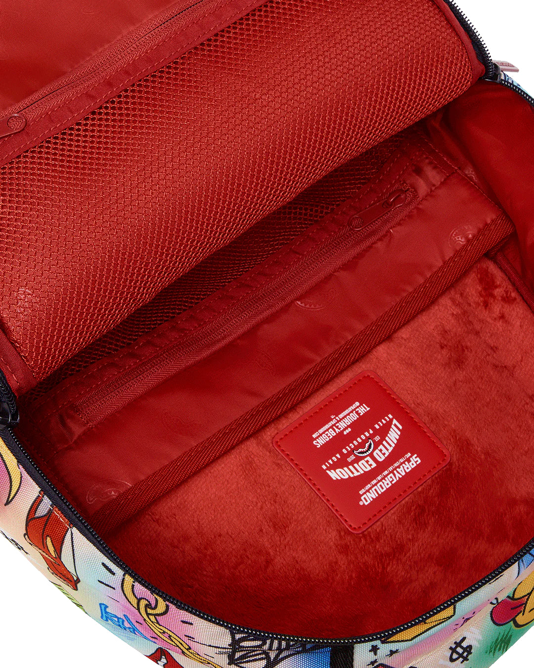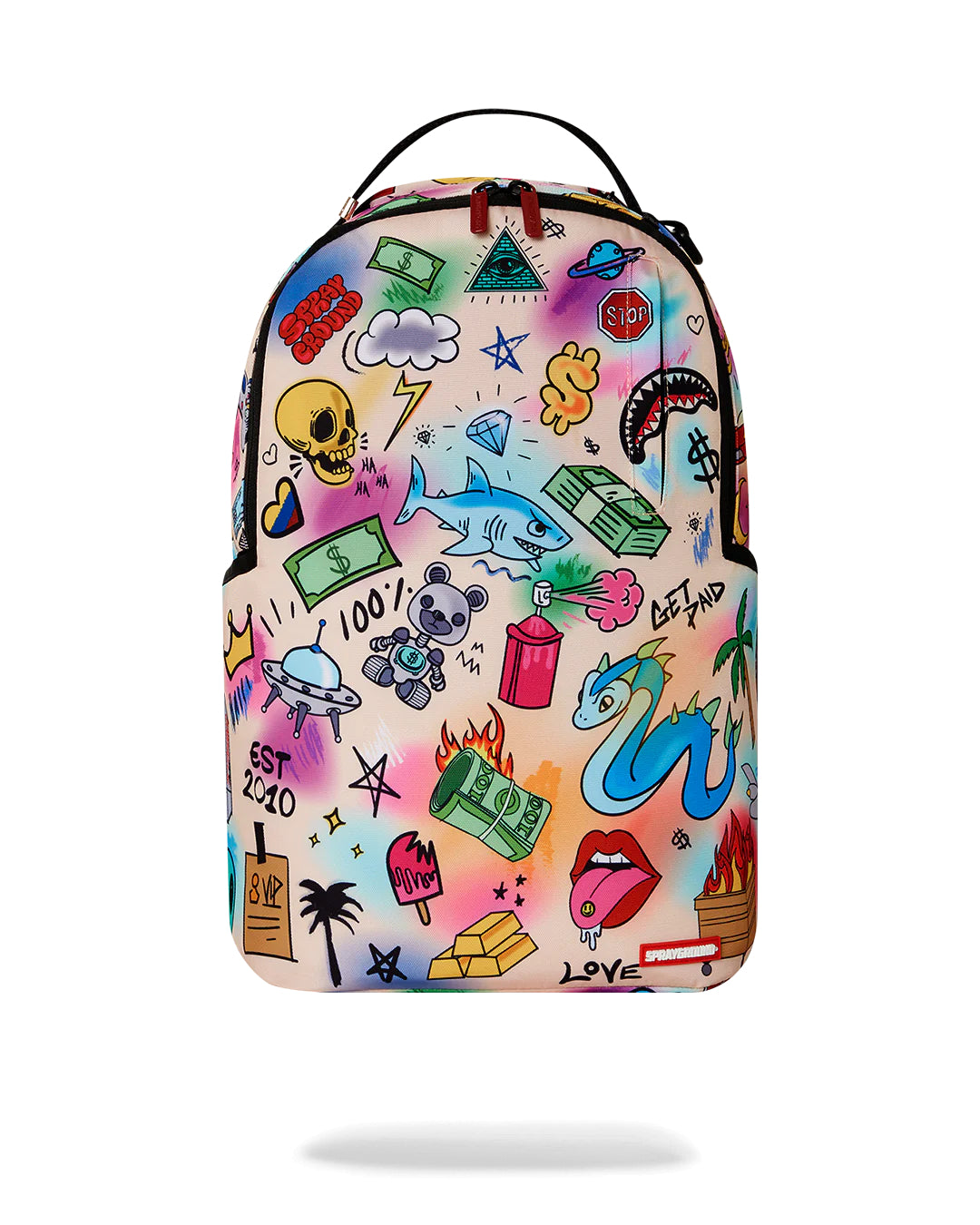Dimensions: 18″ x 6″ x 11.5″ • Front zipper pocket • Side pockets • Zippered Stash pocket • Separate velour sunglass compartment • Ergonomic mesh back padding • Adjustable Straps for custom sizing • Gold zippers with metal hardware • Metal « Sprayground Authentic » badge • Slide through back sleeve connects to carry-on luggage to free your hands