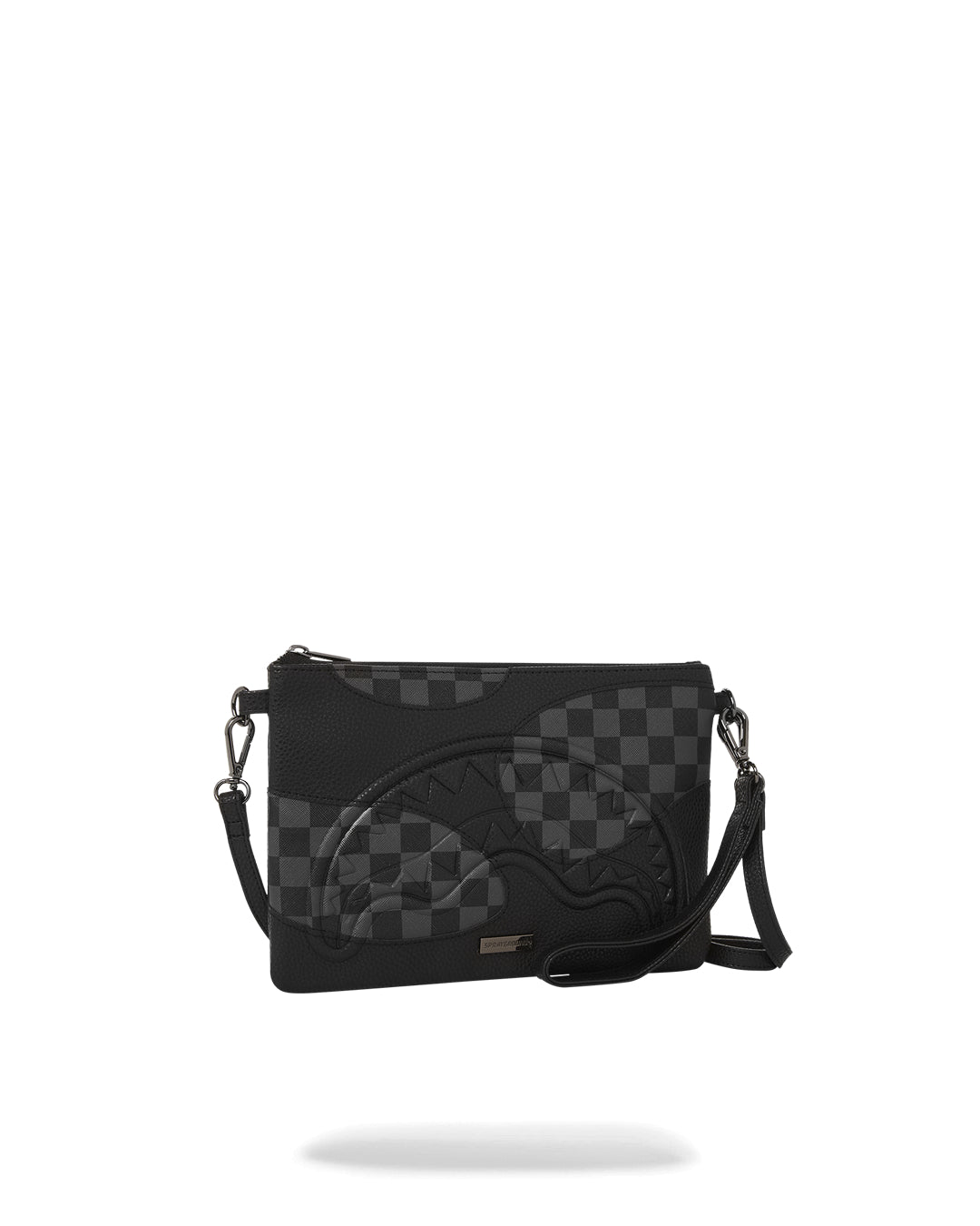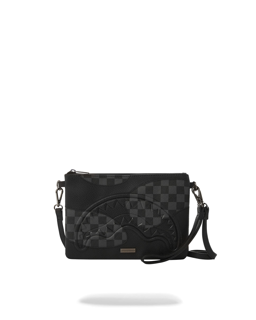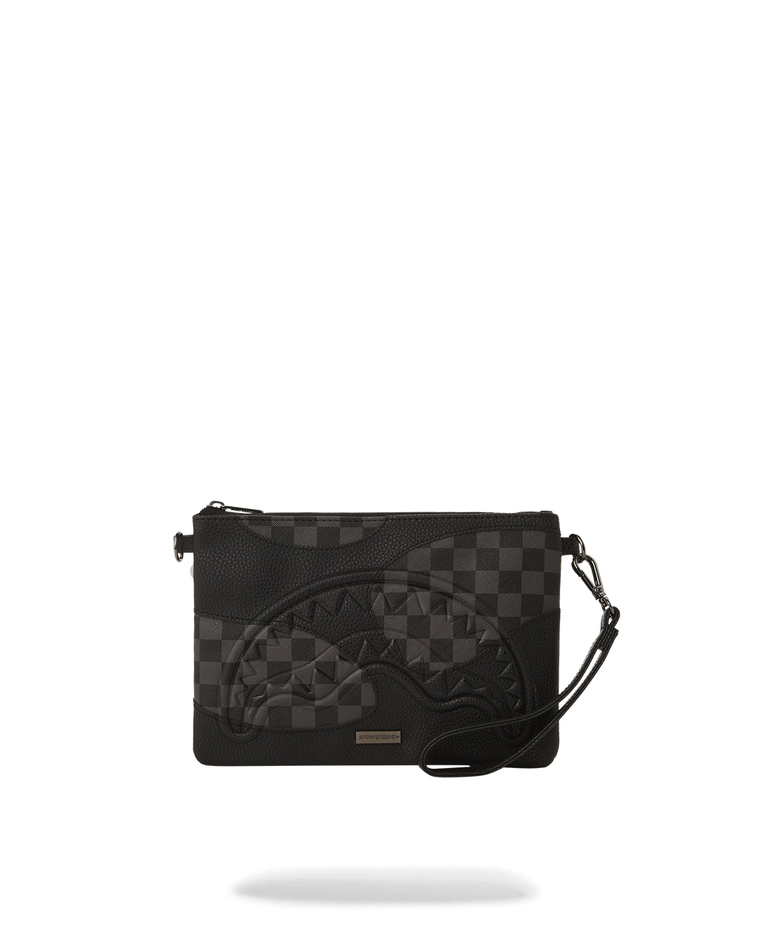 Pouch with removable wristlet strap, handle on front panel, zip closure, secret stash pocket on side seam