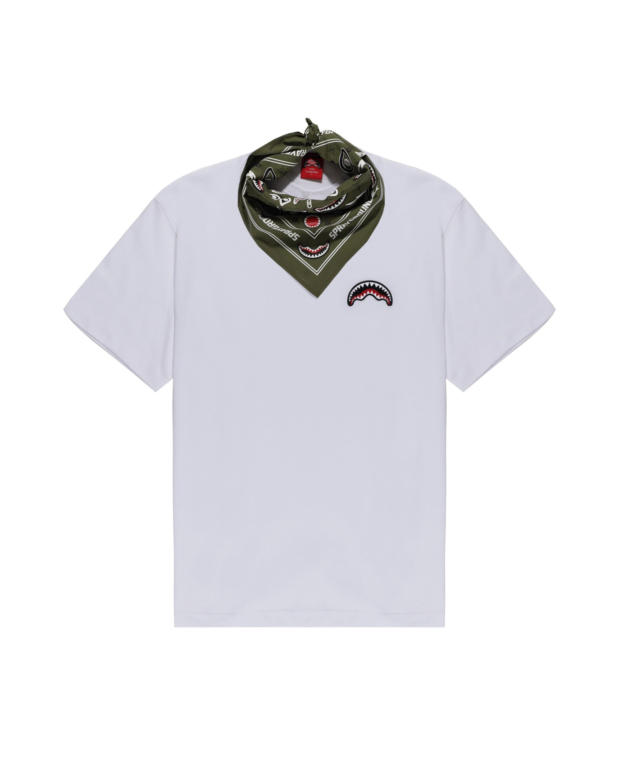 Military green bandana in 100% Organic Cotton poplin silkscreen printed.