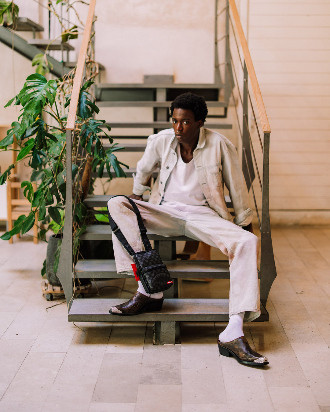 Dimensions: 22.86 cm x 15.24 cm x 3.18 cm • Front zipper pocket • Adjustable double-sided VSM straps for custom sizing • Zipper pocket on back panel • Side handle • Gold zippers with metal hardware • Zippered stash pocket