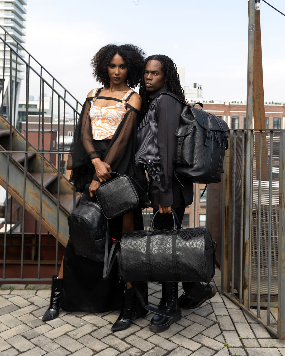 Dimensions: 20″ x 10″ x 10.75″ • Metal zipper pocket • Back Zippers • Zippered sneaker pocket • gold zippers • Adjustable Straps for custom sizing • Metal Zippers with Metal Hardware