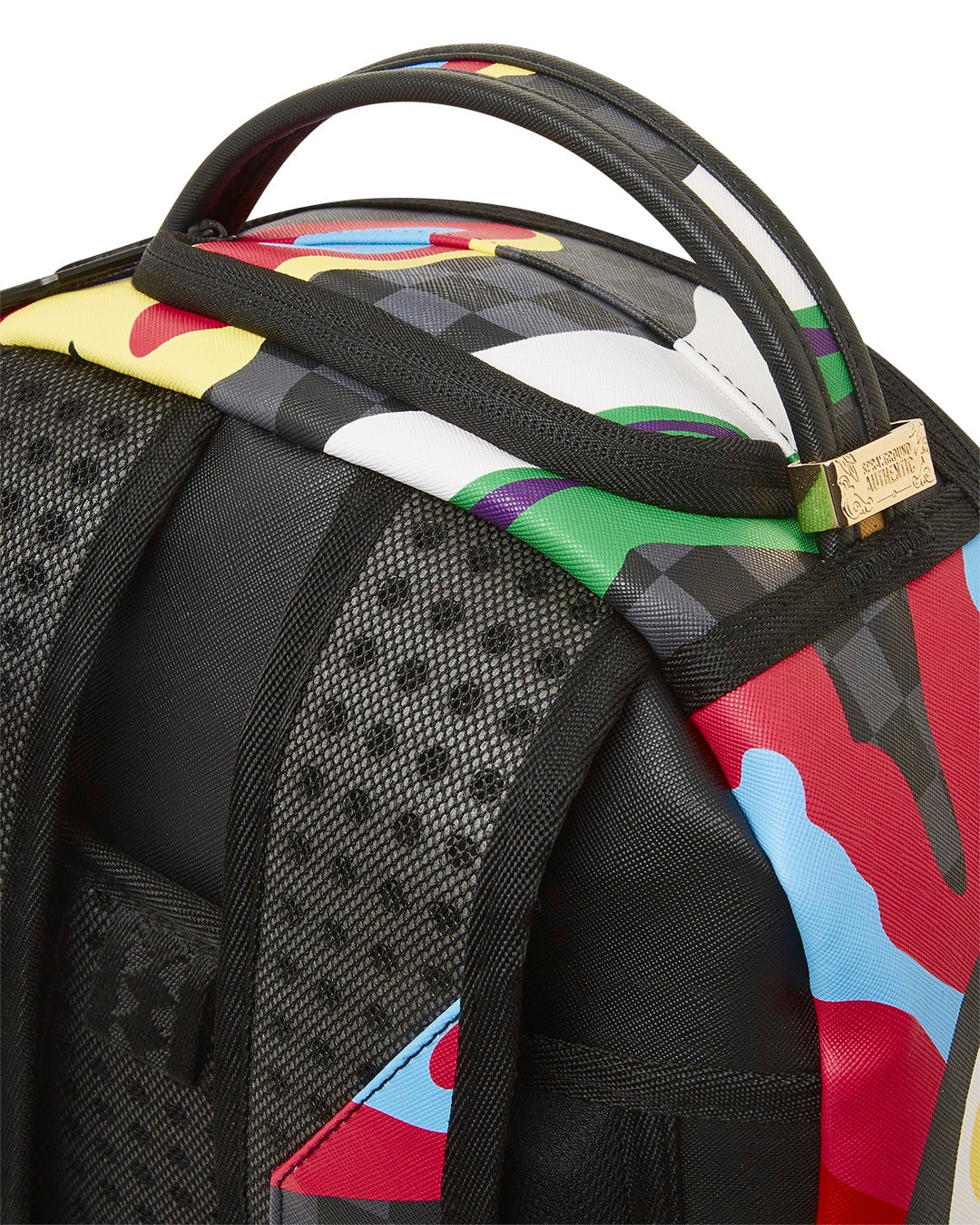 Dimensions: 18″ x 6″ x 11.5″ • Front zipper pocket • Side pockets • Zippered Stash pocket • Separate velour sunglass compartment • Ergonomic mesh back padding • Adjustable Straps for custom sizing • Gold zippers with metal hardware • Metal « Sprayground Authentic » badge • Slide through back sleeve connects to carry-on luggage to free your hands