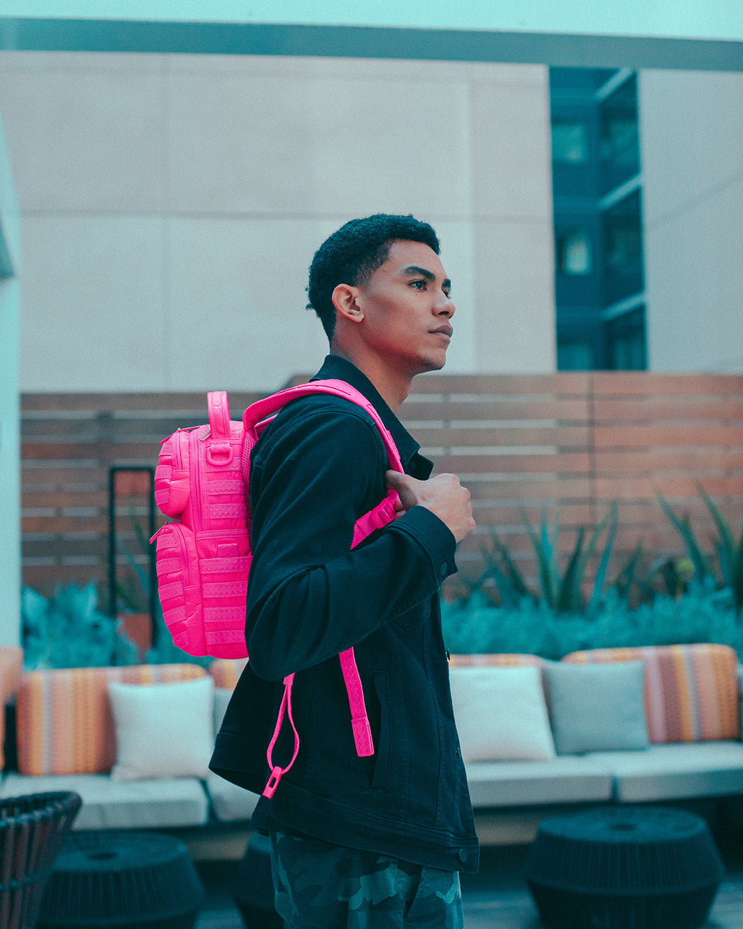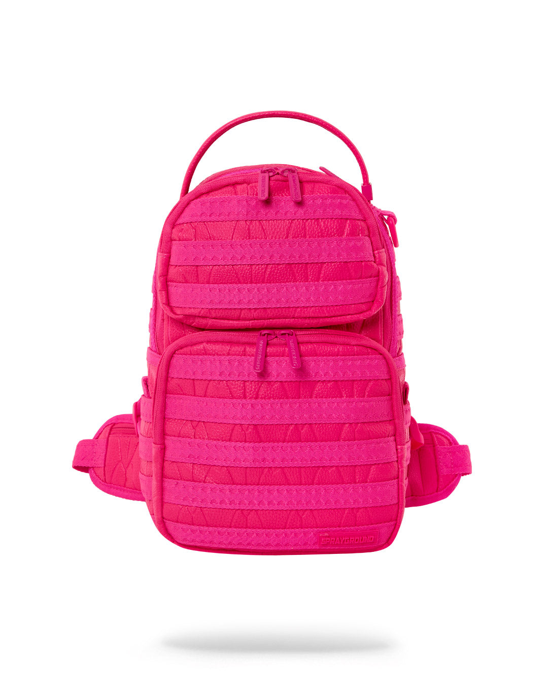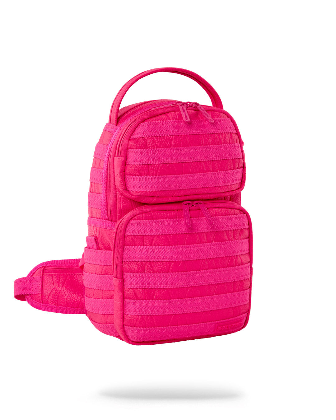 Dimensions: 10″ x 5″ x 11.5″ • Two large main zippered compartments • Side pockets • Zippered Stash pocket • Adjustable straps for custom sizing • Gold zippers with metal hardware