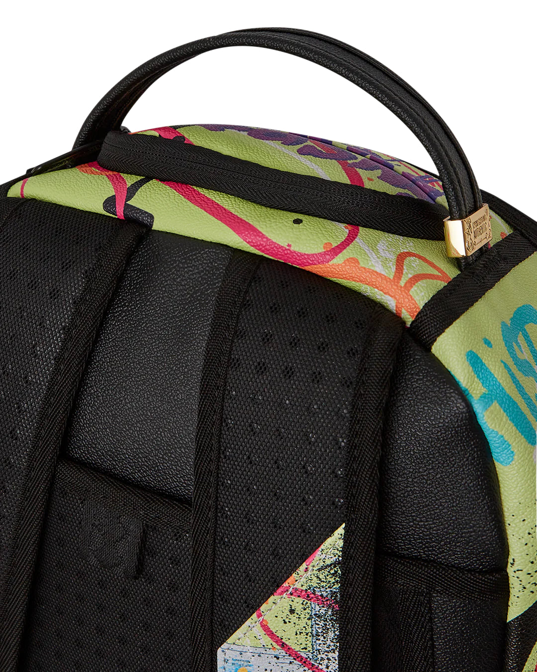 Dimensions: 18″ x 6″ x 11.5″ • Front zipper pocket • Side pockets • Zippered Stash pocket • Separate velour sunglass compartment • Ergonomic mesh back padding • Adjustable Straps for custom sizing • Gold zippers with metal hardware • Metal « Sprayground Authentic » badge • Slide through back sleeve connects to carry-on luggage to free your hands
