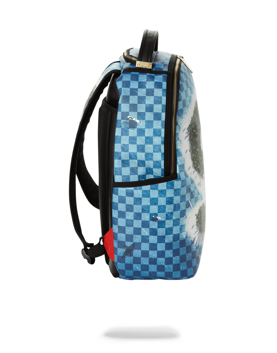 Dimensions: 18″ x 6″ x 11.5″ • Front zipper pocket • Side pockets • Zippered Stash pocket • Separate velour sunglass compartment • Ergonomic mesh back padding • Adjustable Straps for custom sizing • Gold zippers with metal hardware • Metal « Sprayground Authentic » badge • Slide through back sleeve connects to carry-on luggage to free your hands