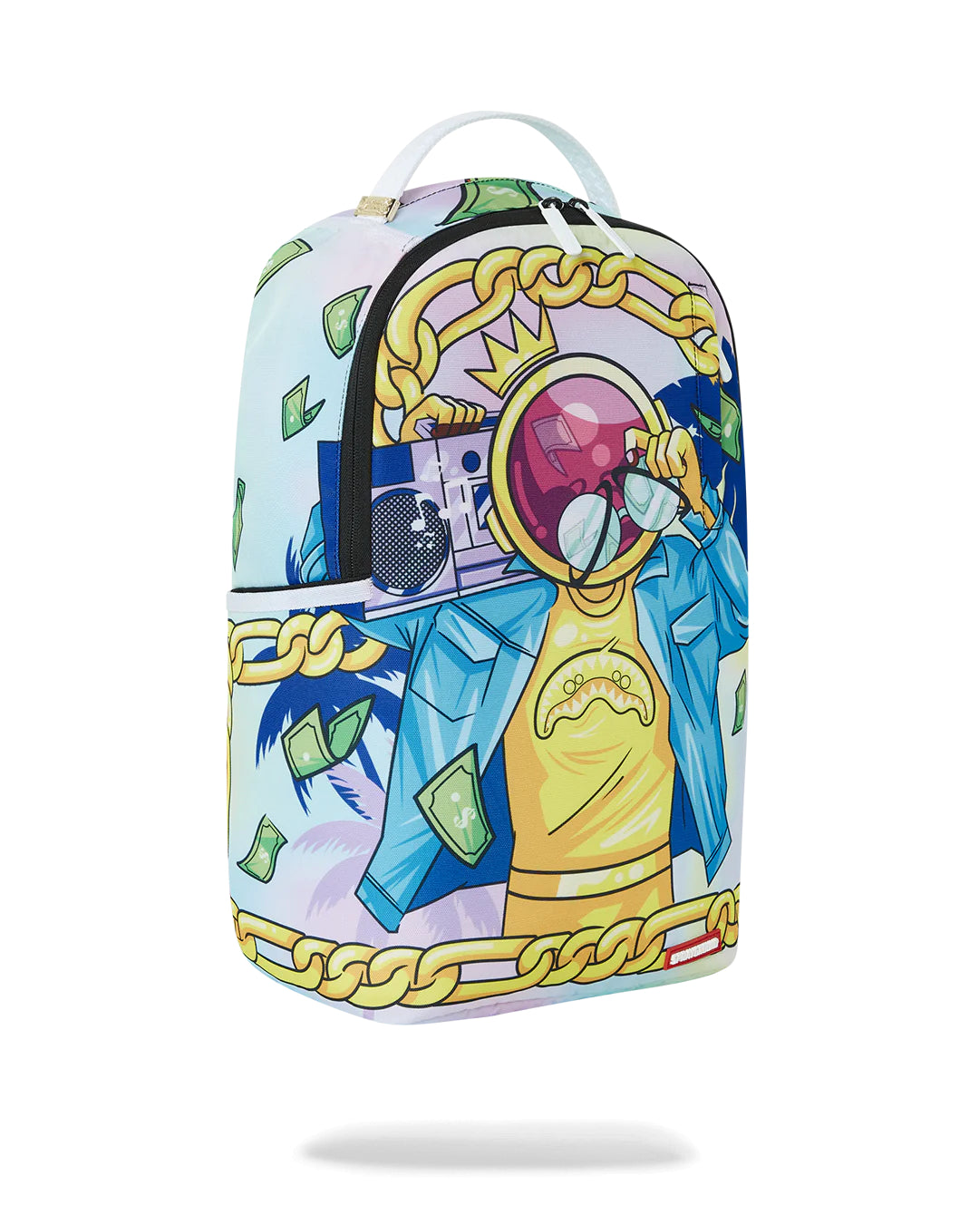 Dimensions: 18″ x 6″ x 11.5″ • Front zipper pocket • Side pockets • Zippered Stash pocket • Separate velour sunglass compartment • Ergonomic mesh back padding • Adjustable Straps for custom sizing • Gold zippers with metal hardware • Metal « Sprayground Authentic » badge • Slide through back sleeve connects to carry-on luggage to free your hands