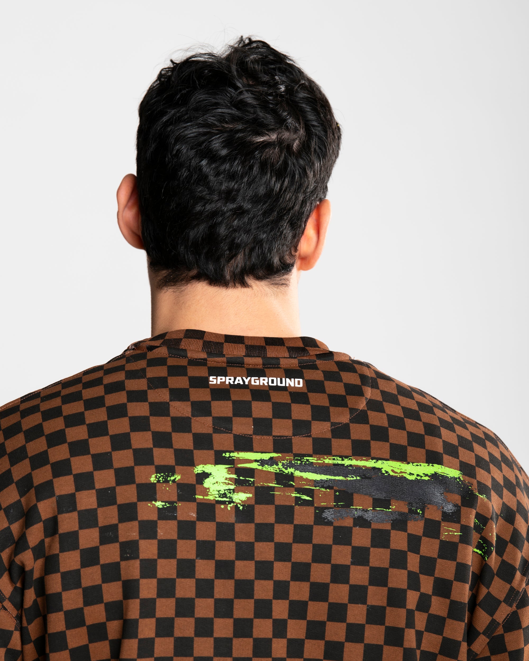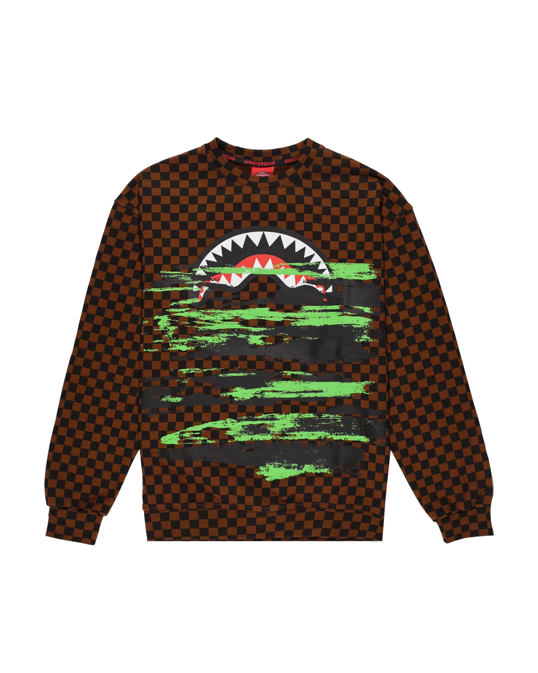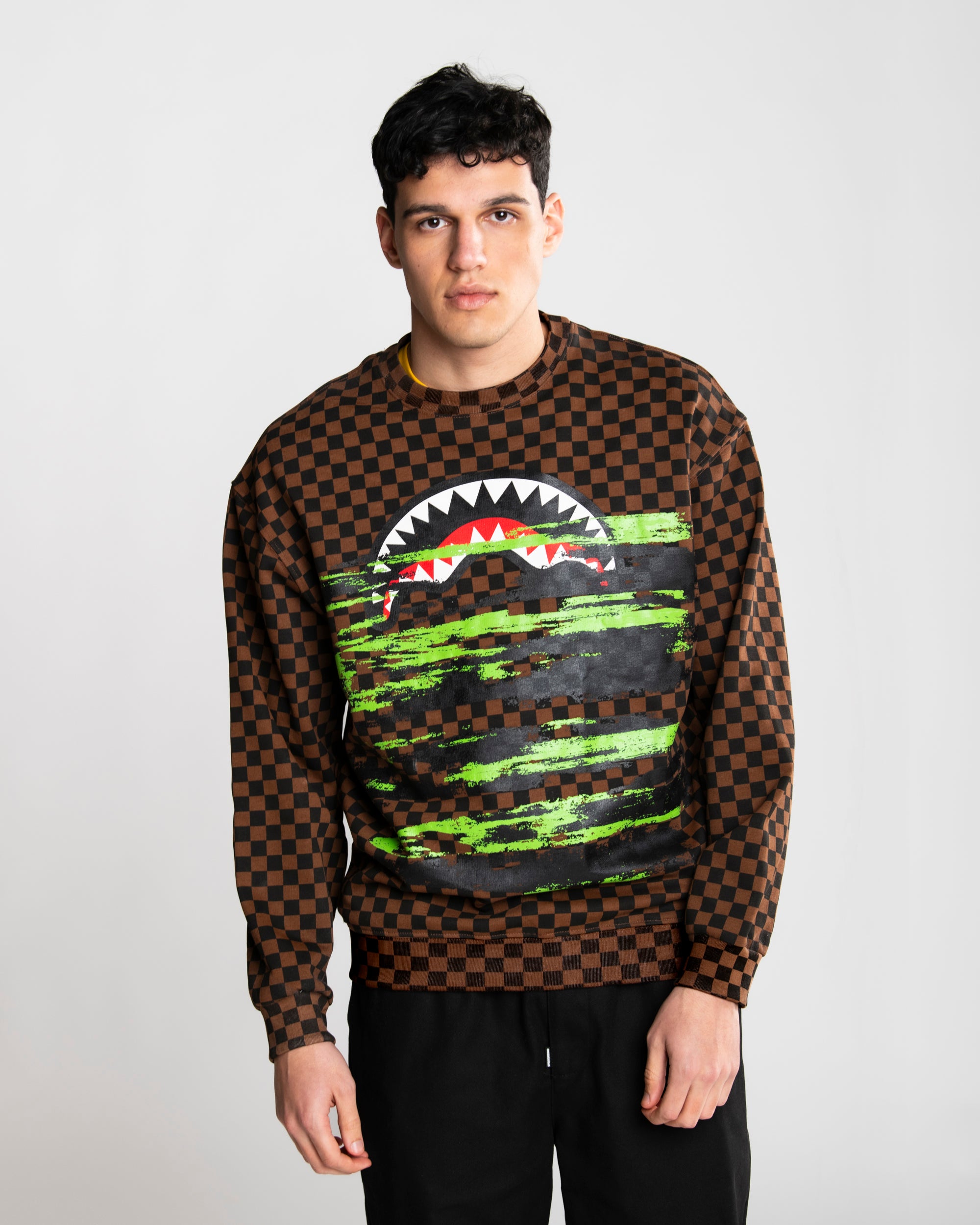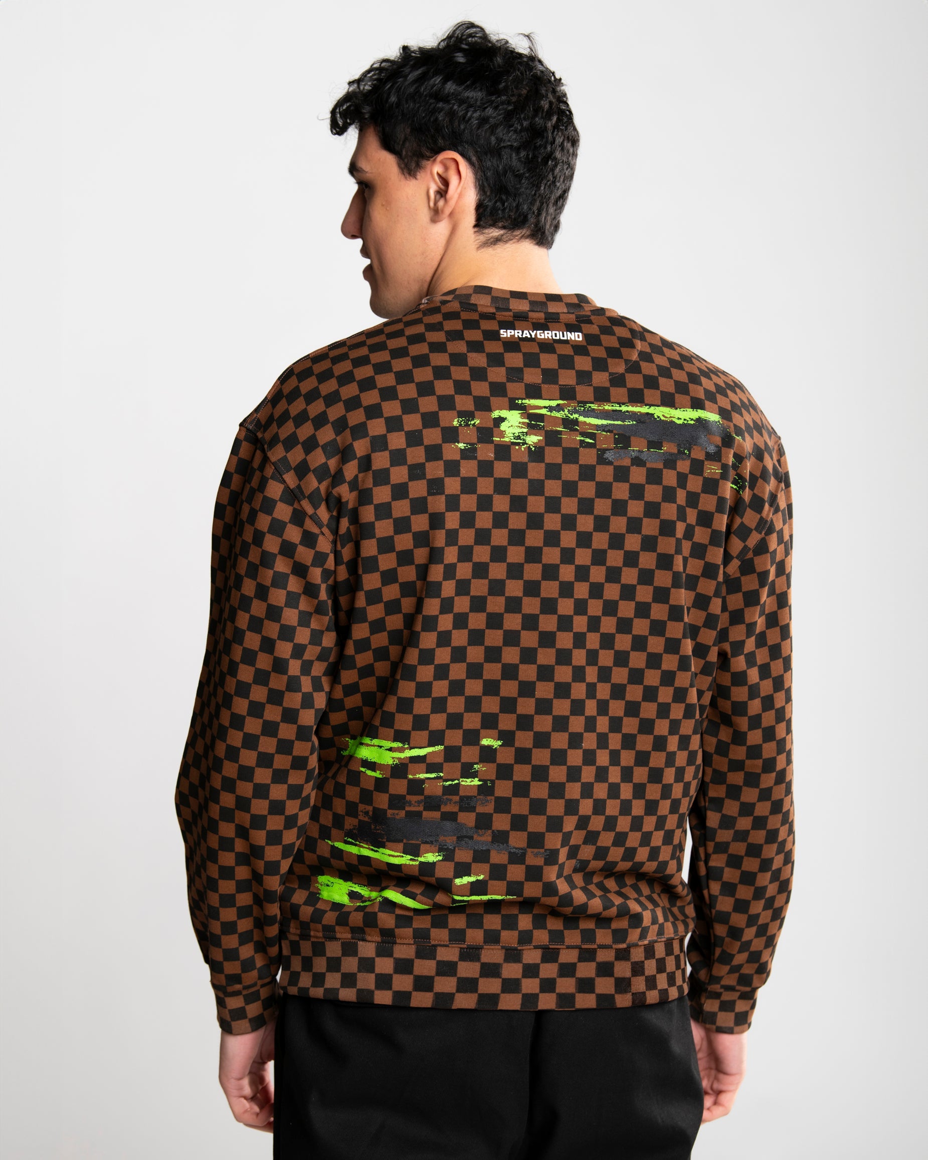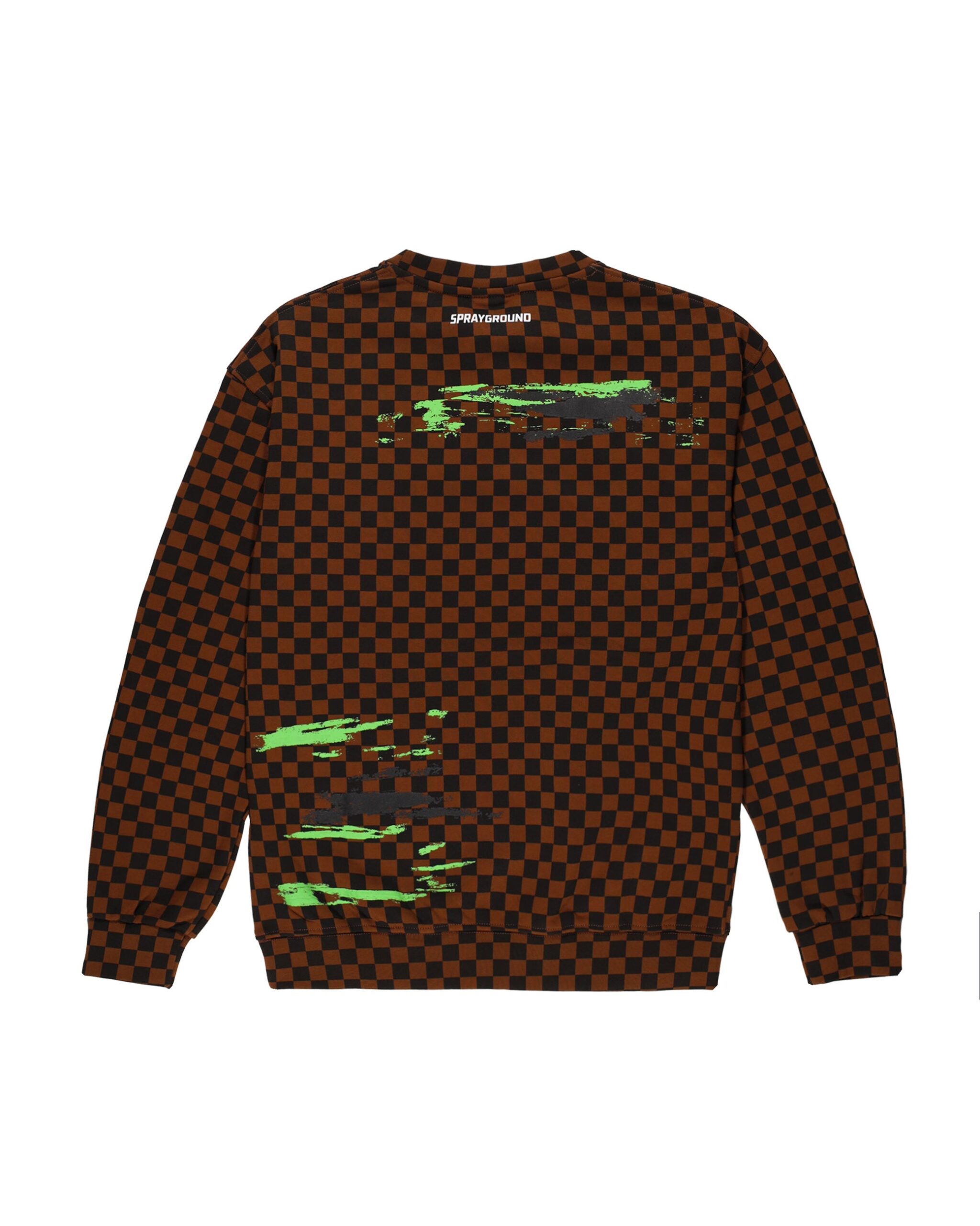 Ungauzed 100% Cotton 330gsm crewneck sweatshirt with all over checkered pattern.