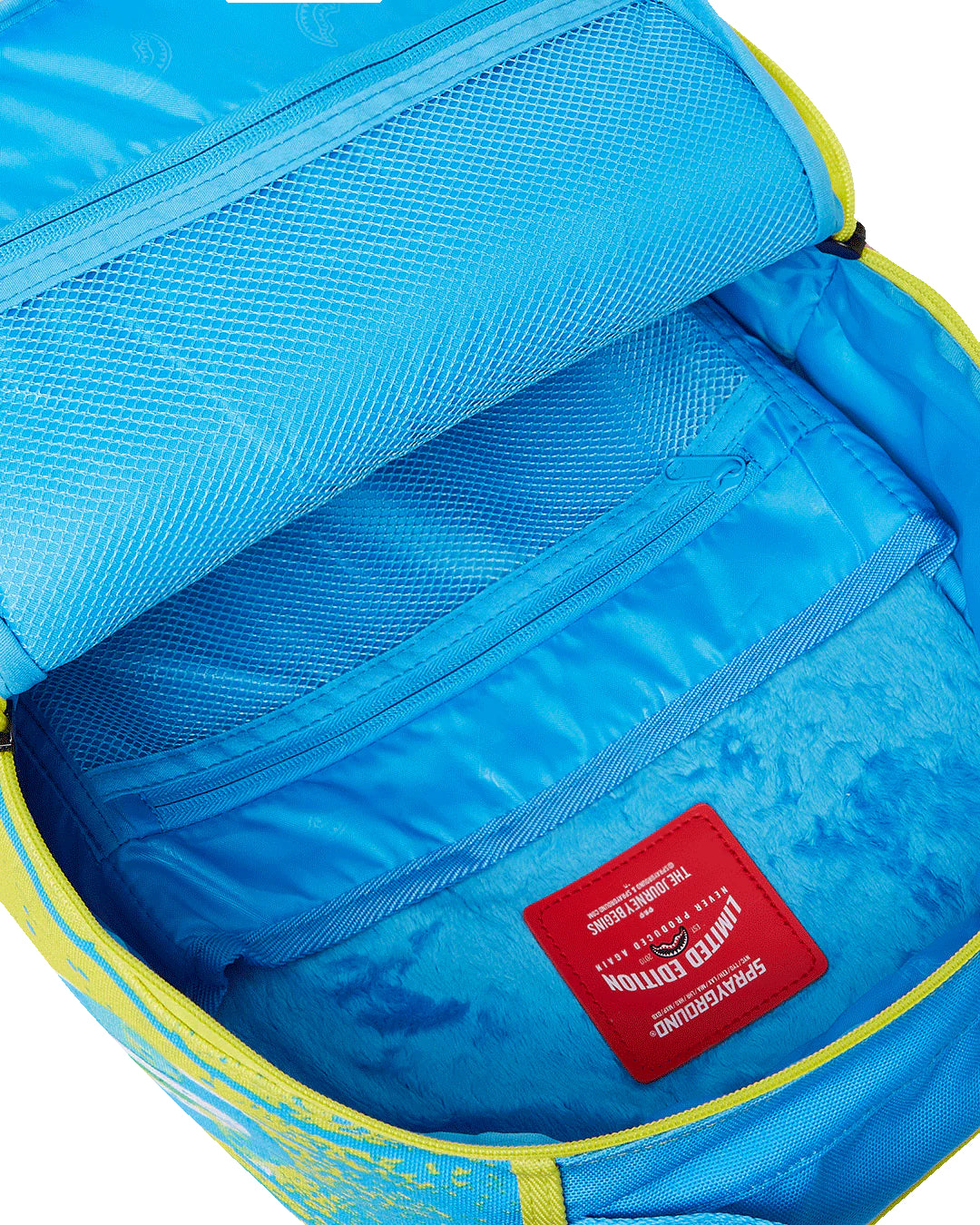 Dimensions: 18″ x 6″ x 11.5″ • Front zipper pocket • Side pockets • Zippered Stash pocket • Separate velour sunglass compartment • Ergonomic mesh back padding • Adjustable Straps for custom sizing • Gold zippers with metal hardware • Metal « Sprayground Authentic » badge • Slide through back sleeve connects to carry-on luggage to free your hands