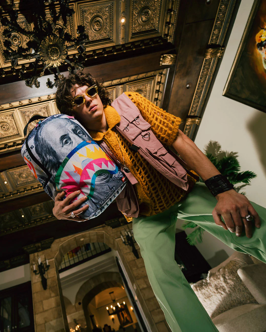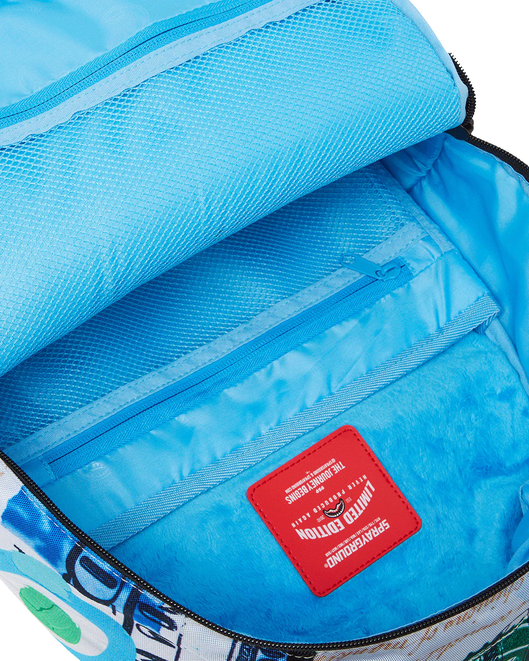 Dimensions: 18″ x 6″ x 11.5″ • Front zipper pocket • Side pockets • Zippered Stash pocket • Separate velour sunglass compartment • Ergonomic mesh back padding • Adjustable Straps for custom sizing • Gold zippers with metal hardware • Metal « Sprayground Authentic » badge • Slide through back sleeve connects to carry-on luggage to free your hands