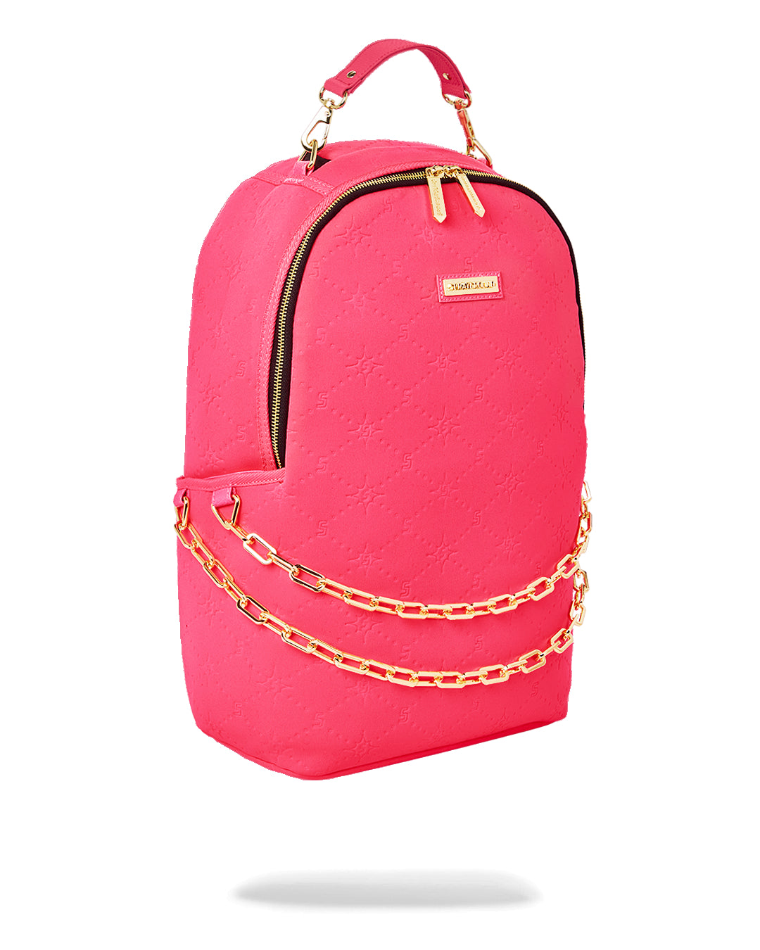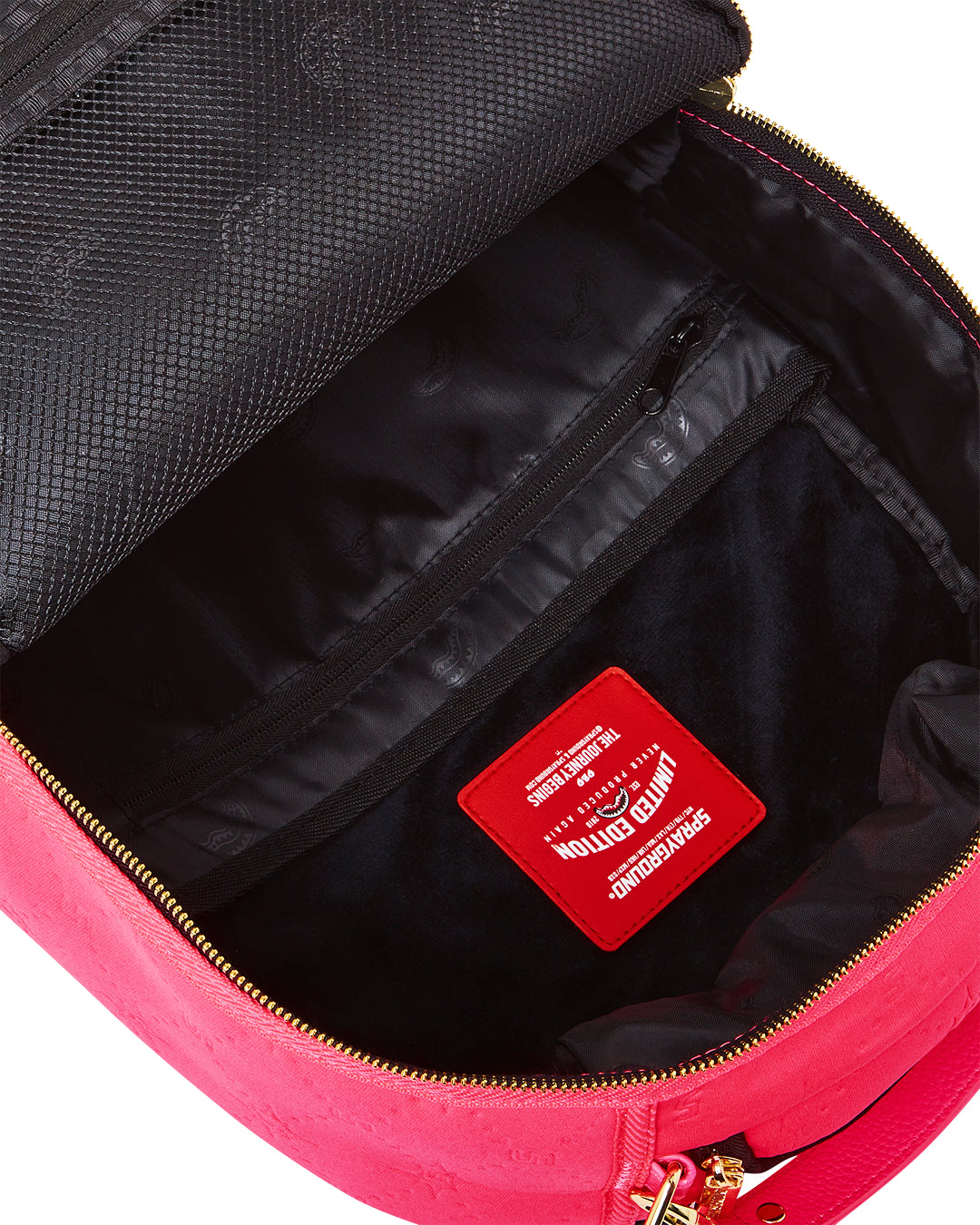 Dimensions: 18″ x 6″ x 11.5″ • Front zipper pocket • Side pockets • Zippered Stash pocket • Separate velour sunglass compartment • Ergonomic mesh back padding • Adjustable Straps for custom sizing • Gold zippers with metal hardware • Metal « Sprayground Authentic » badge • Slide through back sleeve connects to carry-on luggage to free your hands