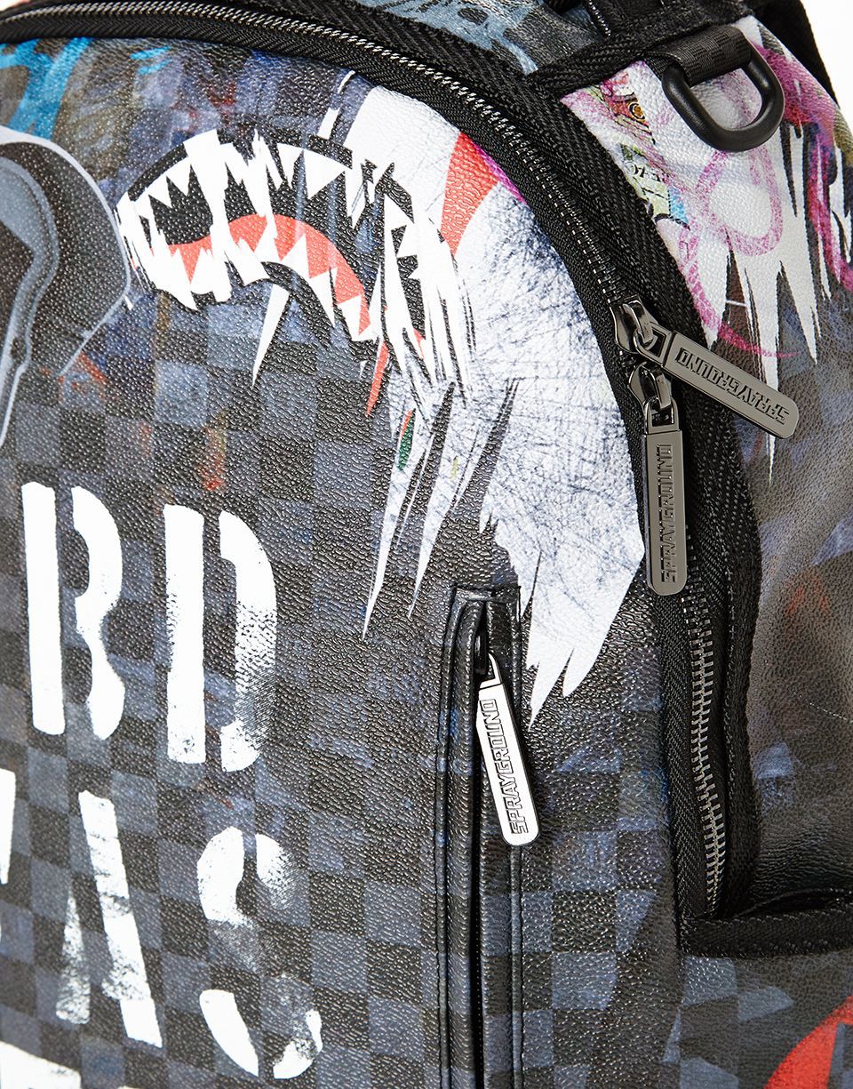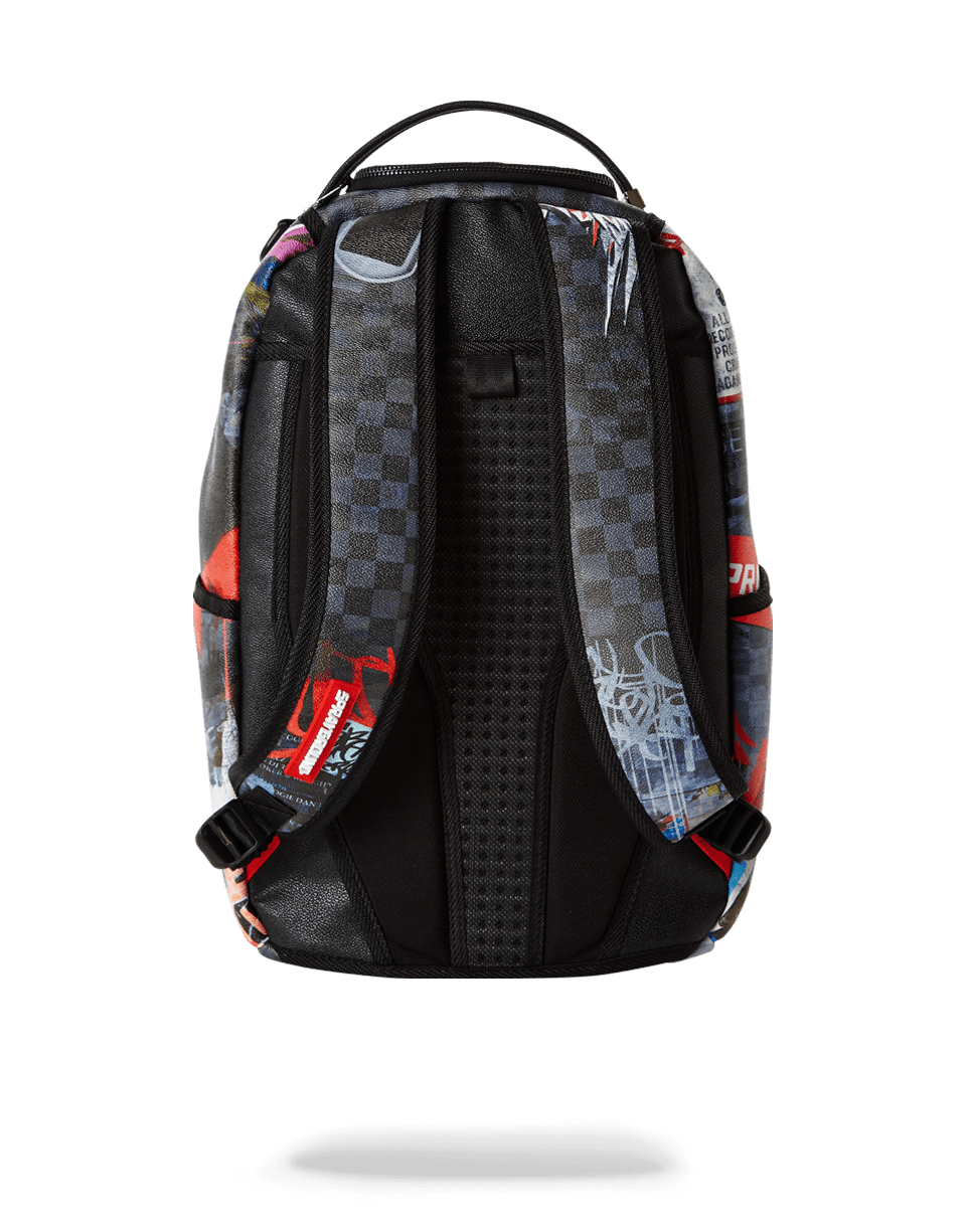 Dimensions: 18″ x 6″ x 11.5″ • Front zipper pocket • Side pockets • Zippered Stash pocket • Separate velour sunglass compartment • Ergonomic mesh back padding • Adjustable Straps for custom sizing • Gold zippers with metal hardware • Metal « Sprayground Authentic » badge • Slide through back sleeve connects to carry-on luggage to free your hands