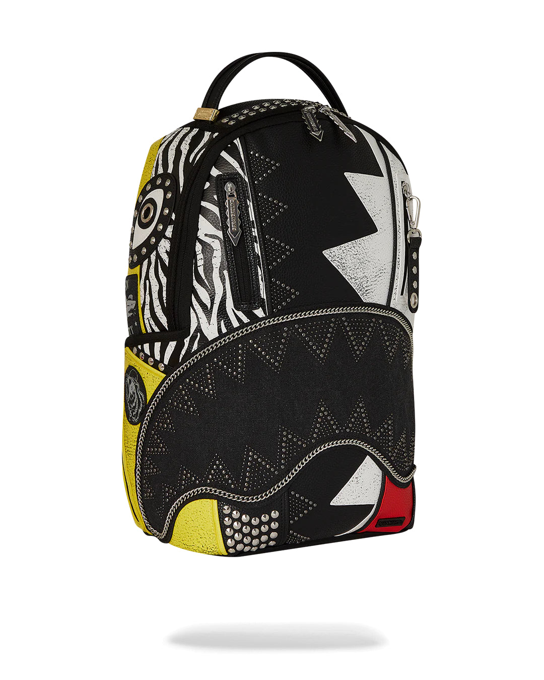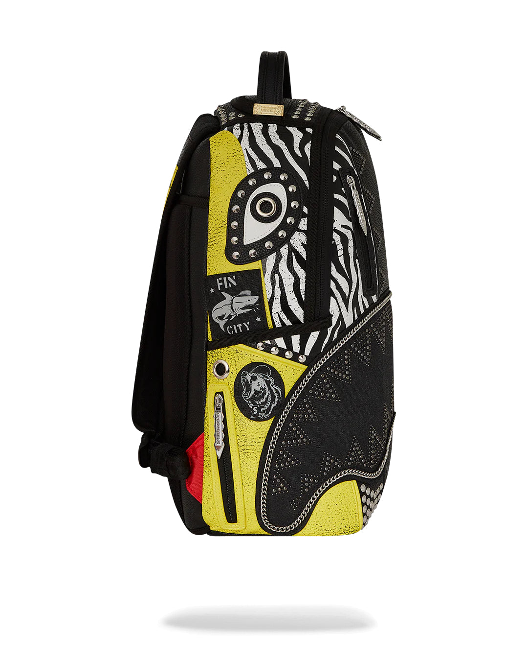 Dimensions: 18″ x 6″ x 11.5″ • Front zipper pocket • Side pockets • Zippered Stash pocket • Separate velour sunglass compartment • Ergonomic mesh back padding • Adjustable Straps for custom sizing • Gold zippers with metal hardware • Metal « Sprayground Authentic » badge • Slide through back sleeve connects to carry-on luggage to free your hands