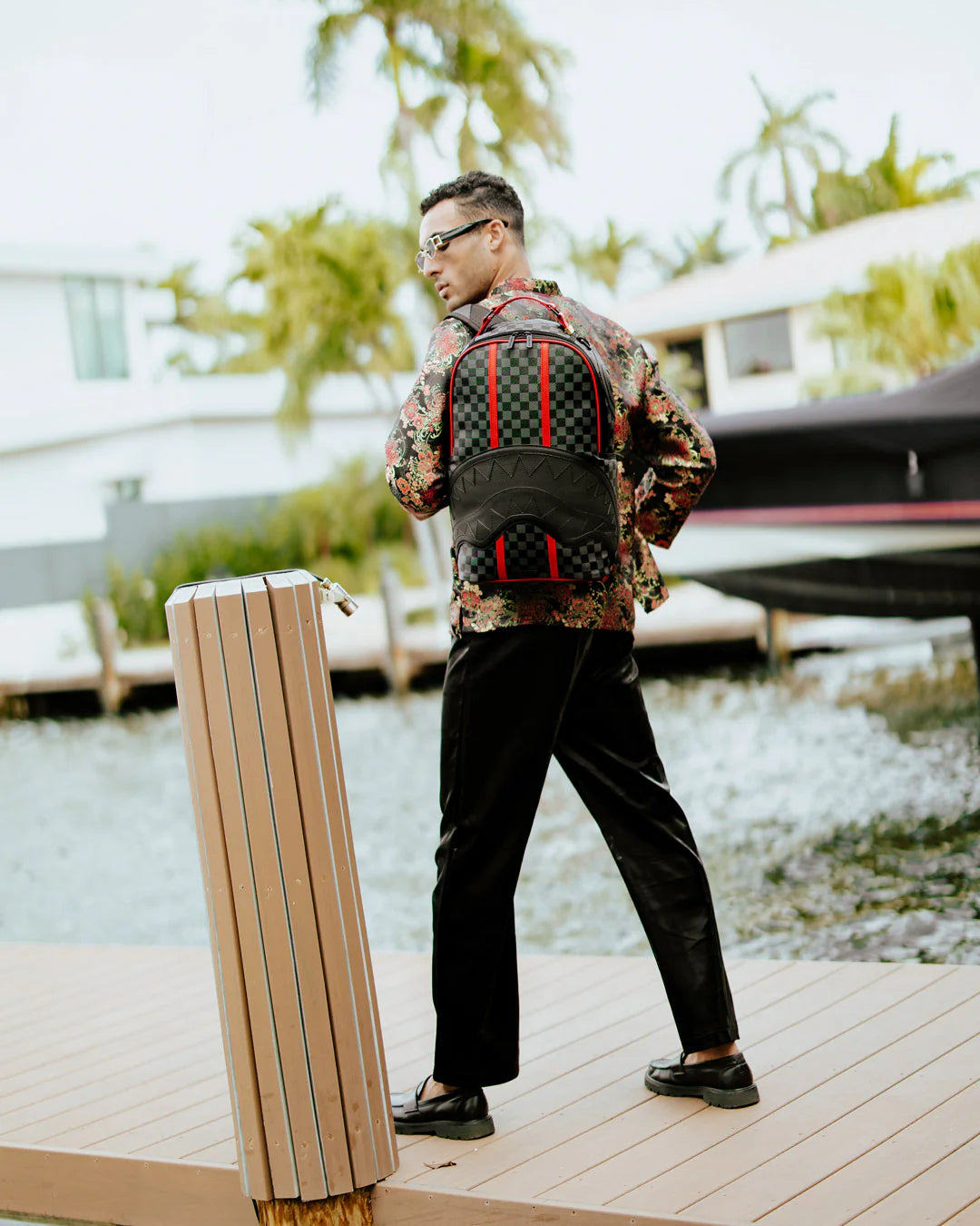 Dimensions: 18″ x 6″ x 11.5″ • Front zipper pocket • Side pockets • Zippered Stash pocket • Separate velour sunglass compartment • Ergonomic mesh back padding • Adjustable Straps for custom sizing • Gold zippers with metal hardware • Metal « Sprayground Authentic » badge • Slide through back sleeve connects to carry-on luggage to free your hands