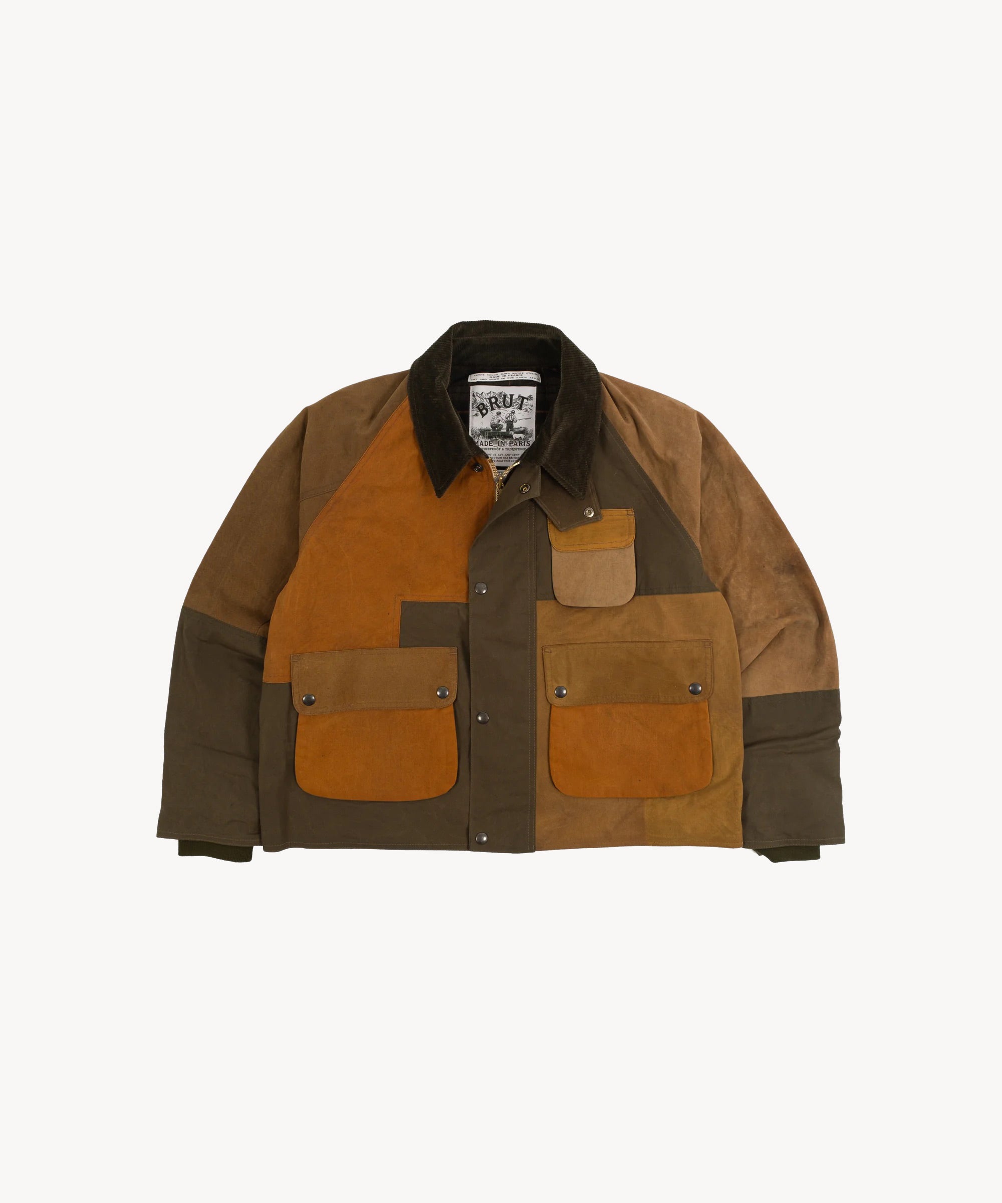The REWORK® BARBOUR V5 is crafted from curated vintage Barbour and British Millerain dry waxed fabric in a patchwork style. Each jacket is one of a kind, made from vintage materials and quality hardware. To honor this legacy, all of our REWORK® BARBOUR V5 jackets are cut and sewn with vintage equipment in our atelier in Paris.