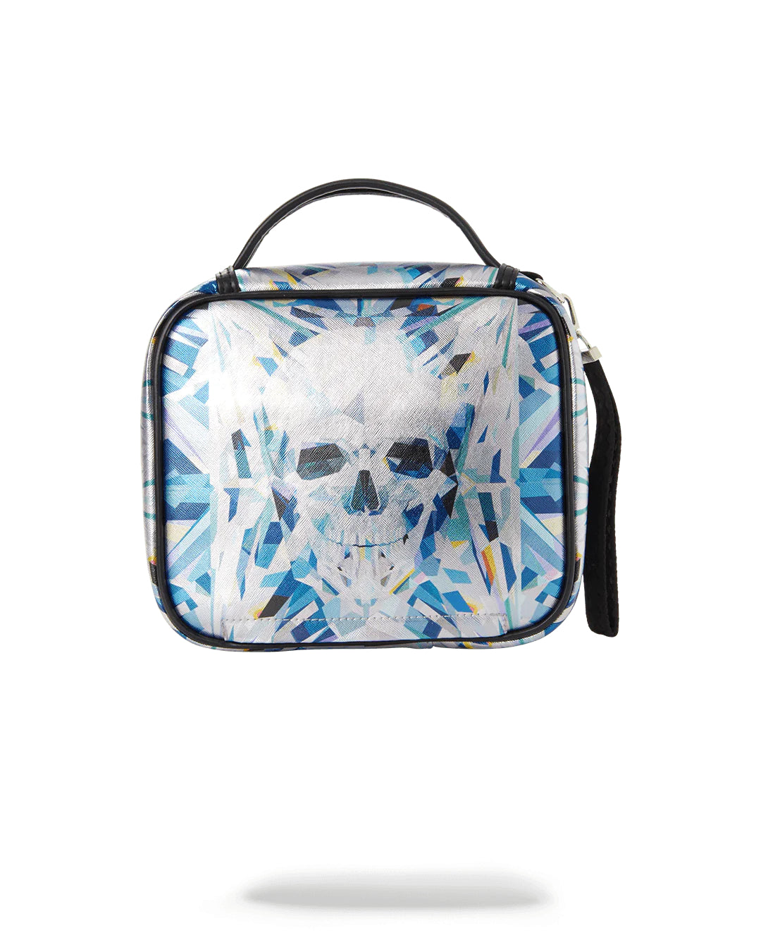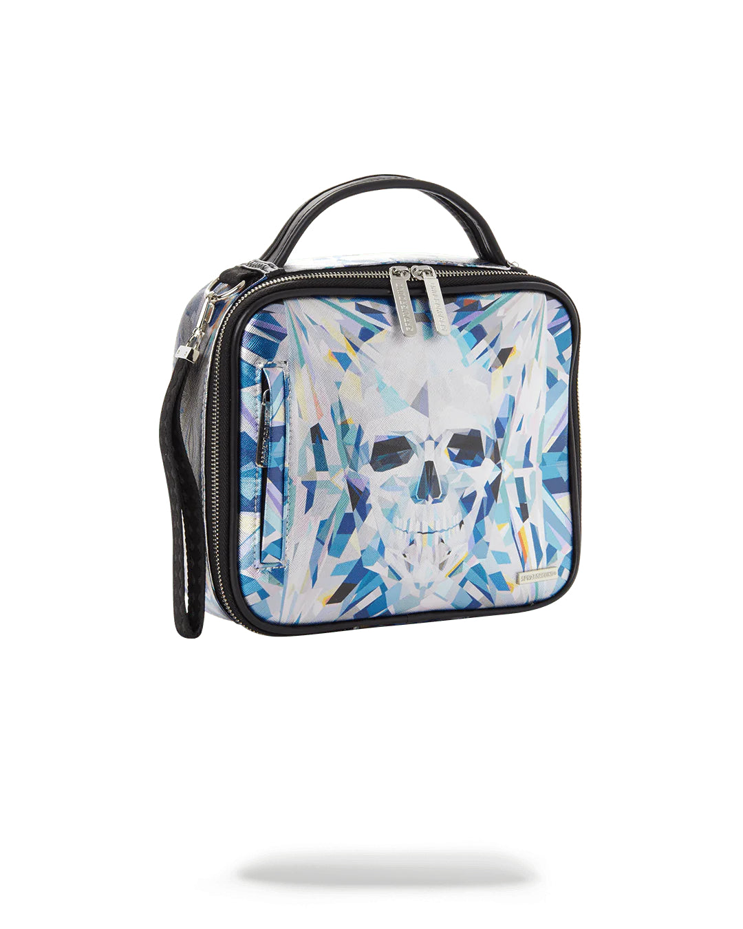 Dimensions: 8.5″ x 3″ x 8.5″ • Double zipper opening • Top handle • Removeable side handle • Gold zippers with metal hardware • Zippered stash pocket
