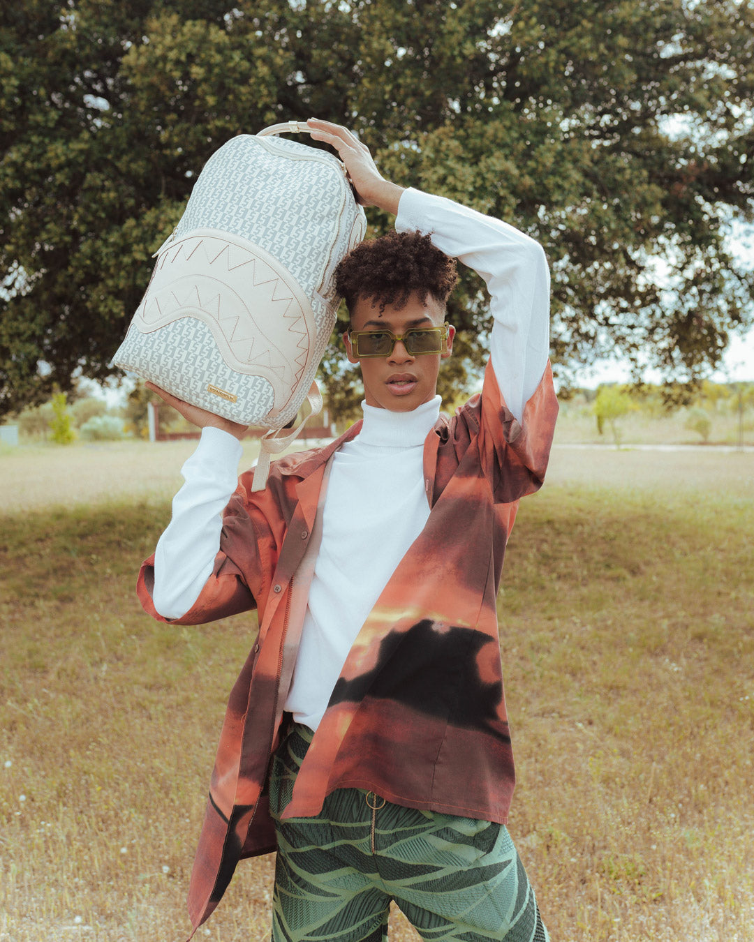 Dimensions: 18″ x 6″ x 11.5″ • Front zipper pocket • Side pockets • Zippered Stash pocket • Separate velour sunglass compartment • Ergonomic mesh back padding • Adjustable Straps for custom sizing • Gold zippers with metal hardware • Metal « Sprayground Authentic » badge • Slide through back sleeve connects to carry-on luggage to free your hands