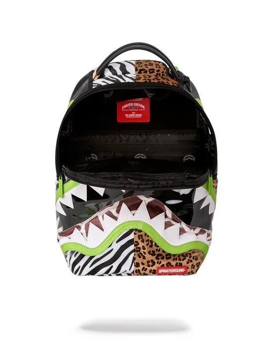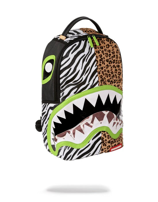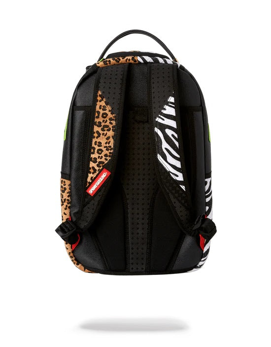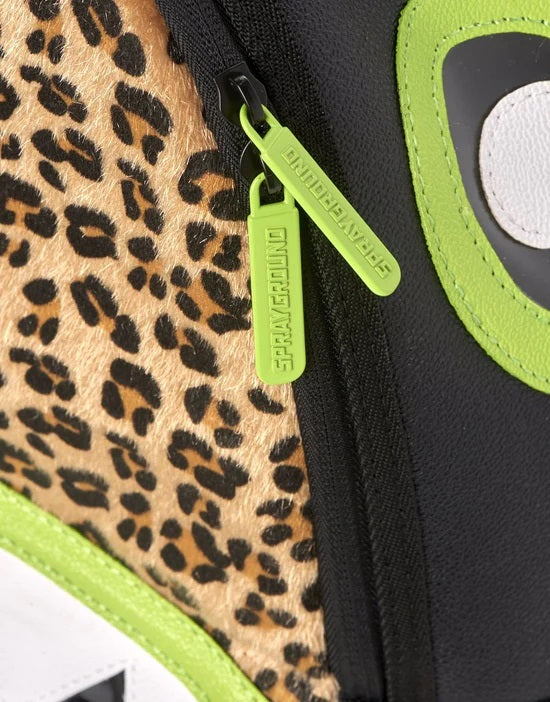 Dimensions: 46cm x 15cm x 30cm • Front zipper pocket • Side pockets • Zippered Stash pocket • Separate velour sunglass compartment • Ergonomic mesh back padding • Adjustable Straps for custom sizing • Neon chrome zippers with metal hardware • Metal « Sprayground Authentic » badge • Slide through back sleeve connects to carry-on luggage to free your hands