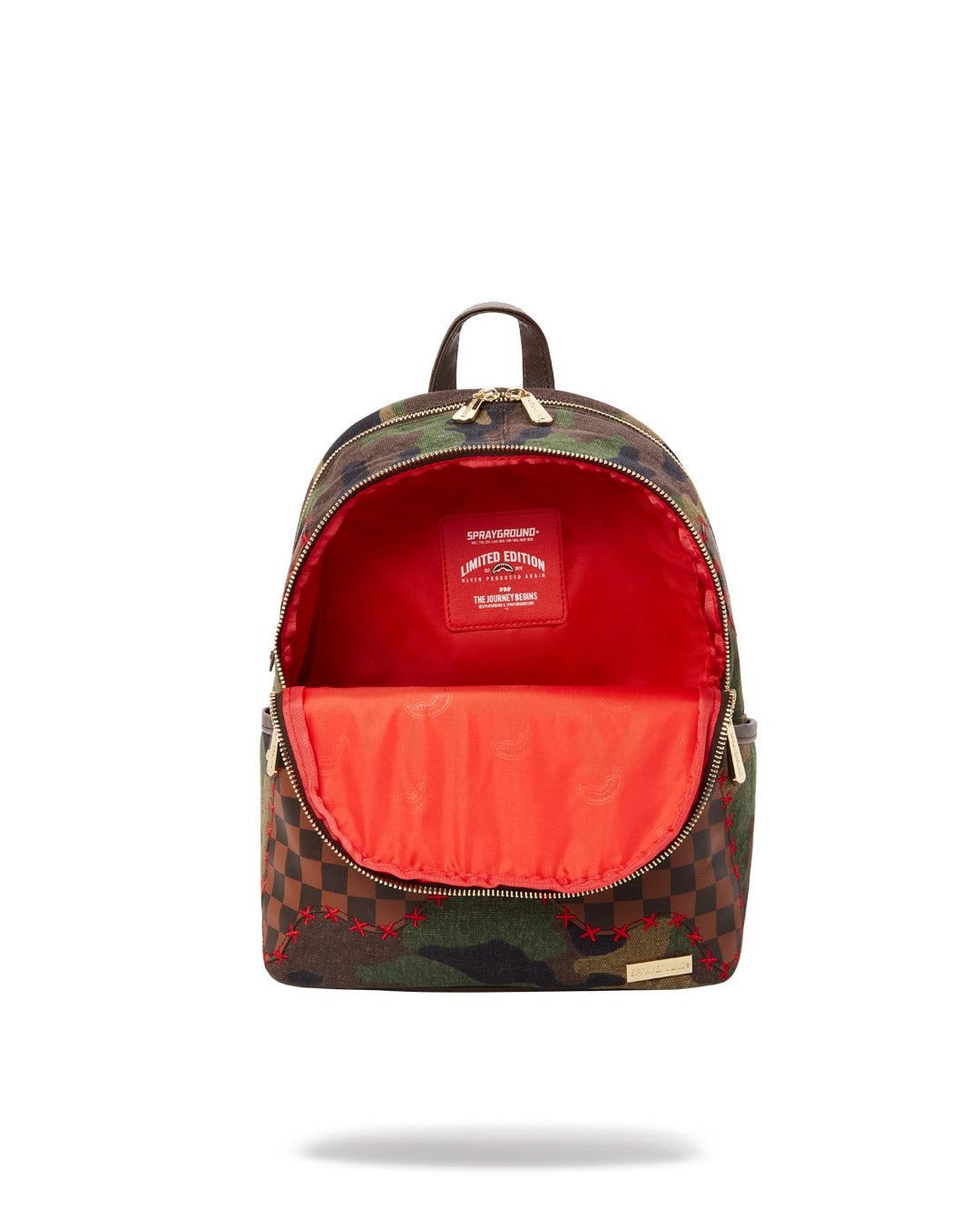 Dimensions: 10″ x 5″ x 11.5″ • Two large main zippered compartments • Side pockets • Zippered Stash pocket • Adjustable straps for custom sizing • Gold zippers with metal hardware
