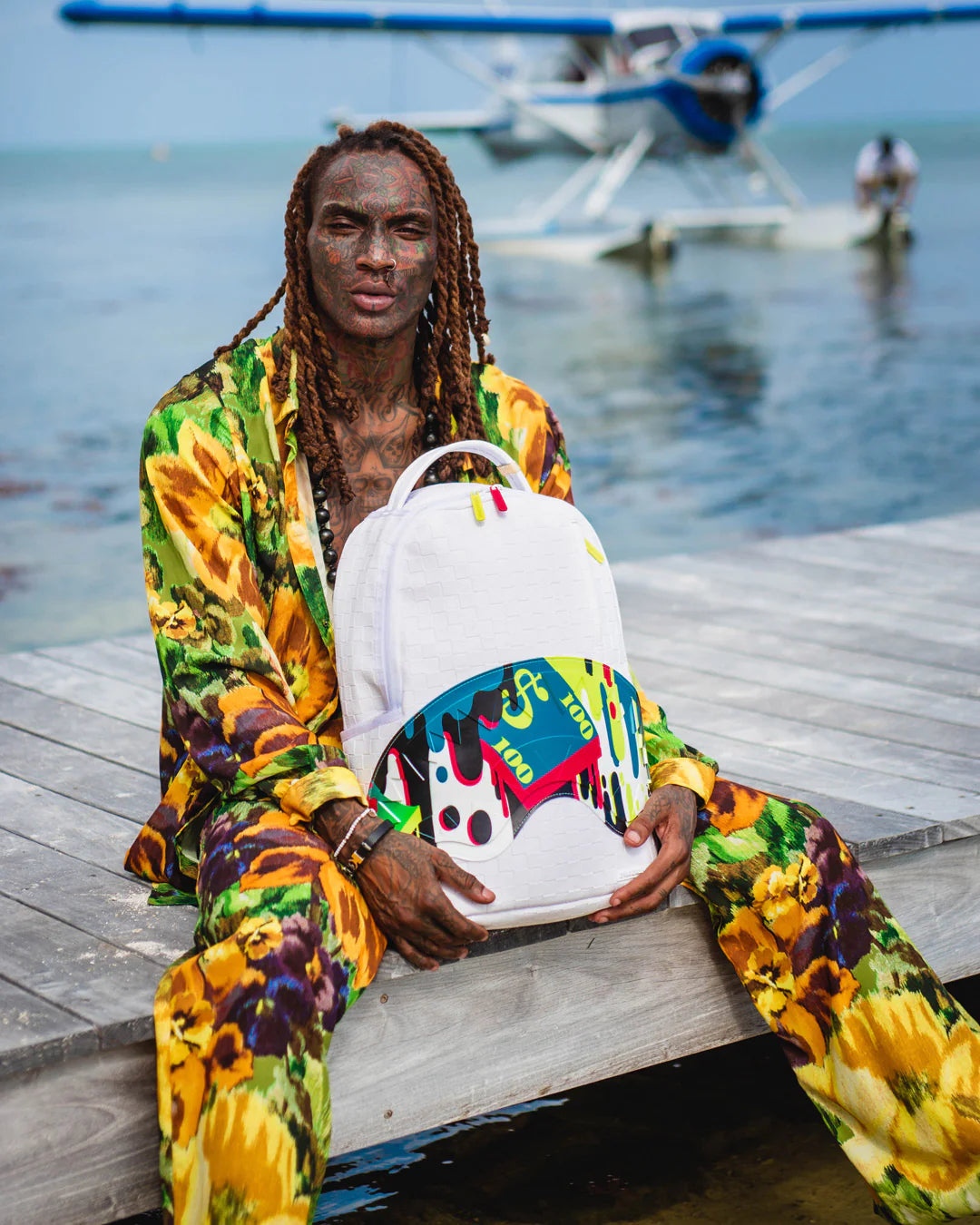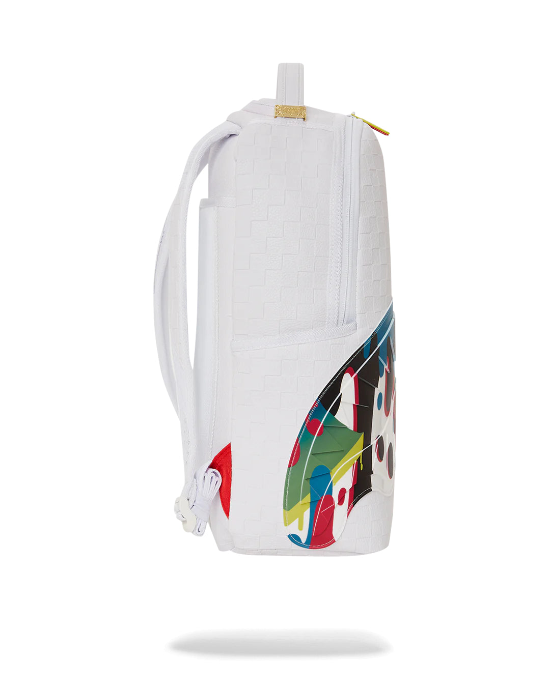 Dimensions: 18″ x 6″ x 11.5″ • Front zipper pocket • Side pockets • Zippered Stash pocket • Separate velour sunglass compartment • Ergonomic mesh back padding • Adjustable Straps for custom sizing • Gold zippers with metal hardware • Metal « Sprayground Authentic » badge • Slide through back sleeve connects to carry-on luggage to free your hands
