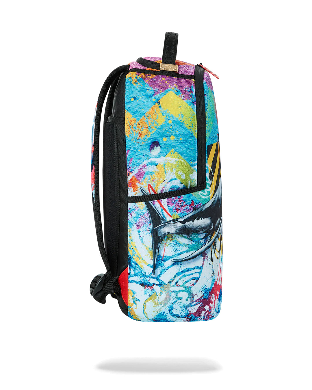 Dimensions: 18″ x 6″ x 11.5″ • Front zipper pocket • Side pockets • Zippered Stash pocket • Separate velour sunglass compartment • Ergonomic mesh back padding • Adjustable Straps for custom sizing • Gold zippers with metal hardware • Metal « Sprayground Authentic » badge • Slide through back sleeve connects to carry-on luggage to free your hands