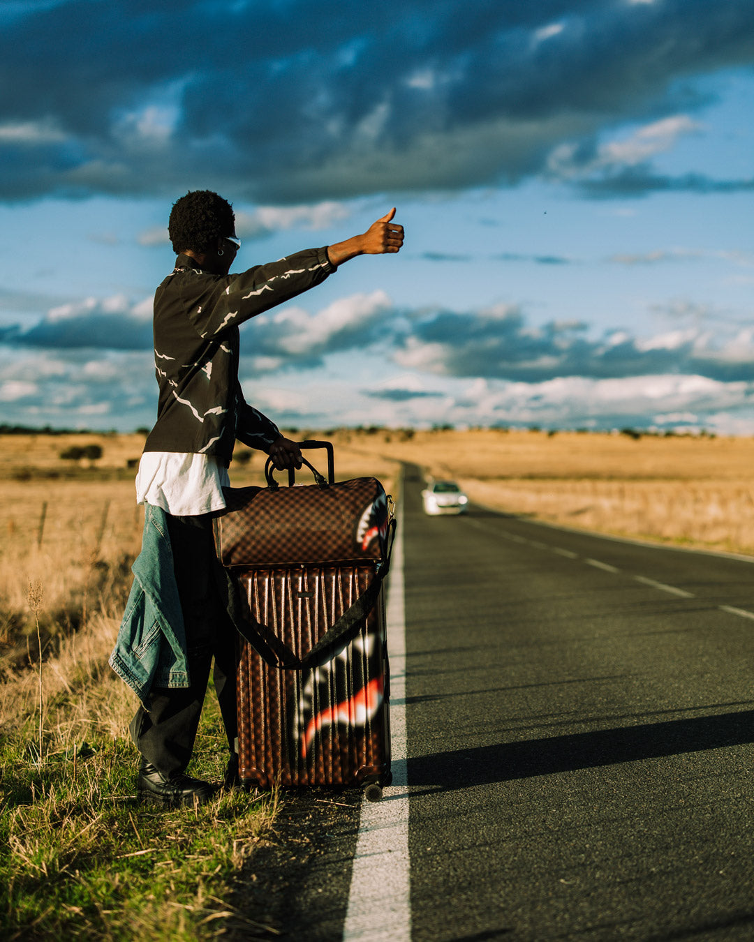 Dimensions: 50.80 cm x 25.40 cm x 27.31 cm • Metal zipper pocket • Back zippers • Zippered sneaker pocket • Gold zippers • Adjustable straps for custom sizing • Metal zippers with metal hardware • Bag of Sprayground money