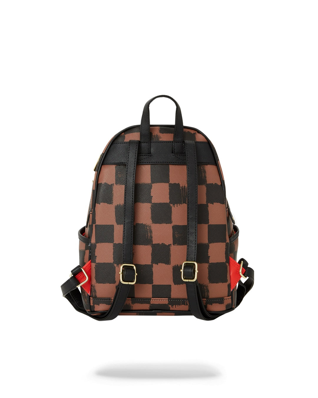 Dimensions: 10″ x 5″ x 11.5″ • Two large main zippered compartments • Side pockets • Zippered Stash pocket • Adjustable straps for custom sizing • Gold zippers with metal hardware