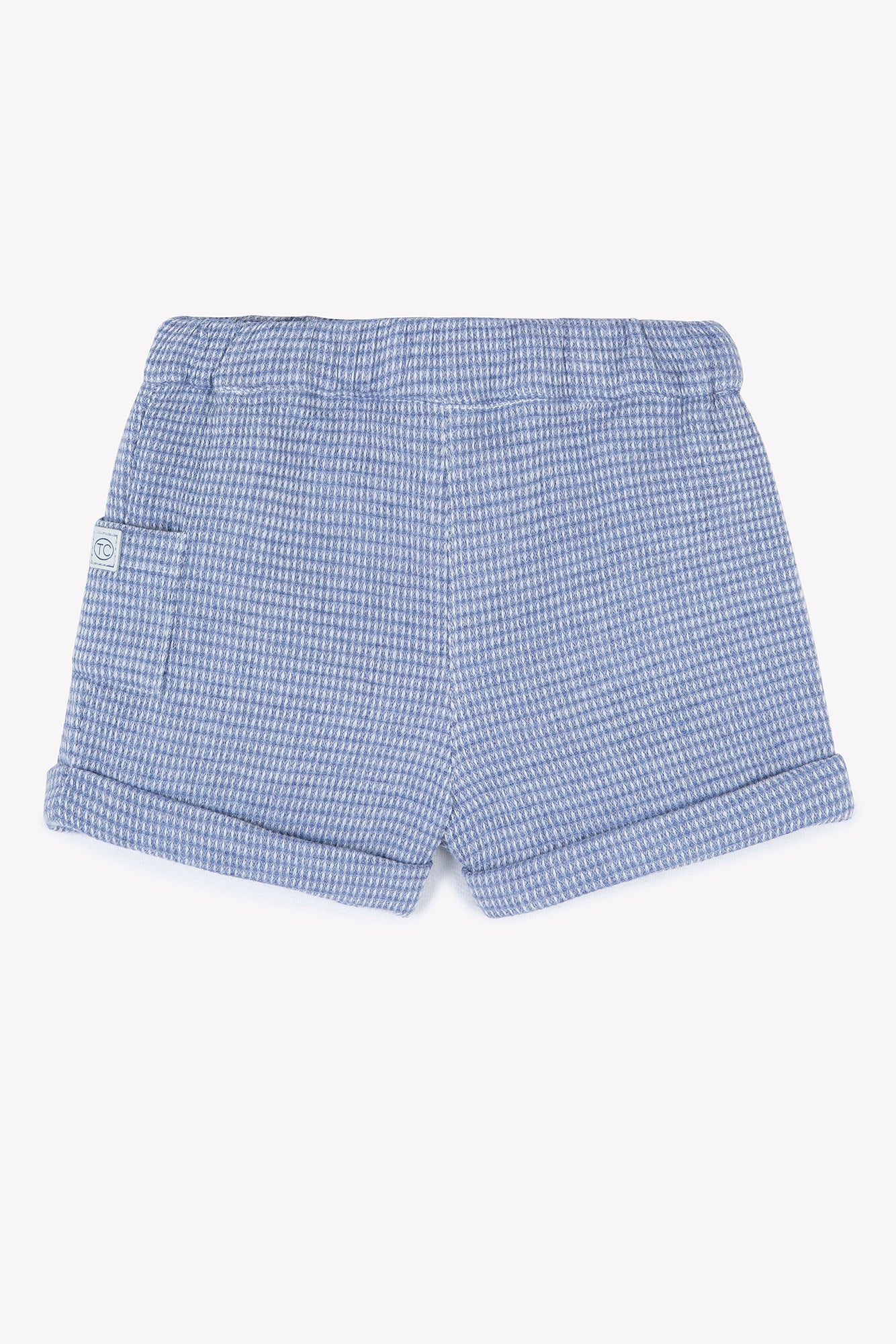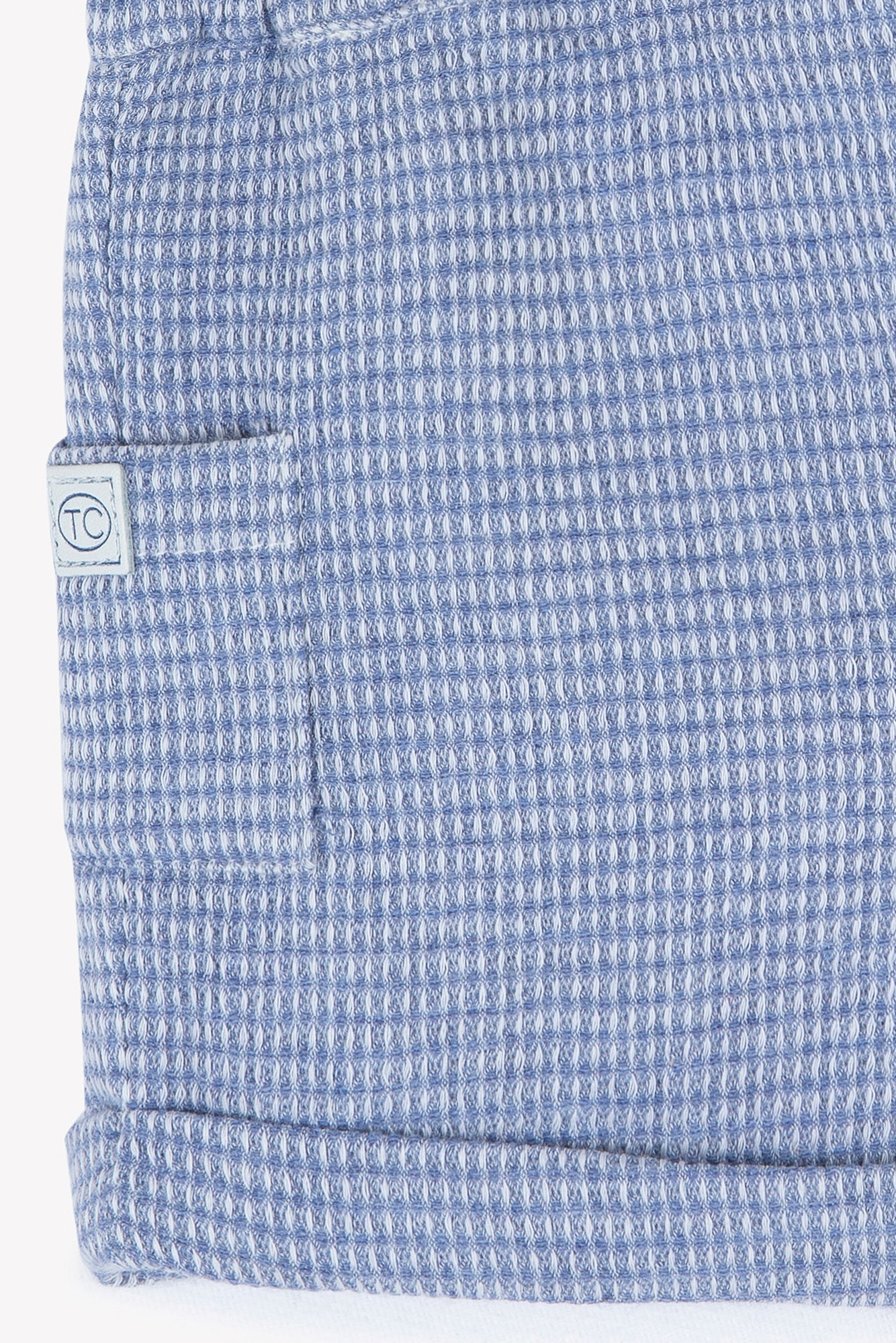 Ce short bleu grisé en maille nid d’abeille pour bébé garçon offre une texture douce et élégante. On aime l’associer à un tee-shirt pour un look confortable et raffiné, parfait pour les journées ensoleillées. CA26111-44