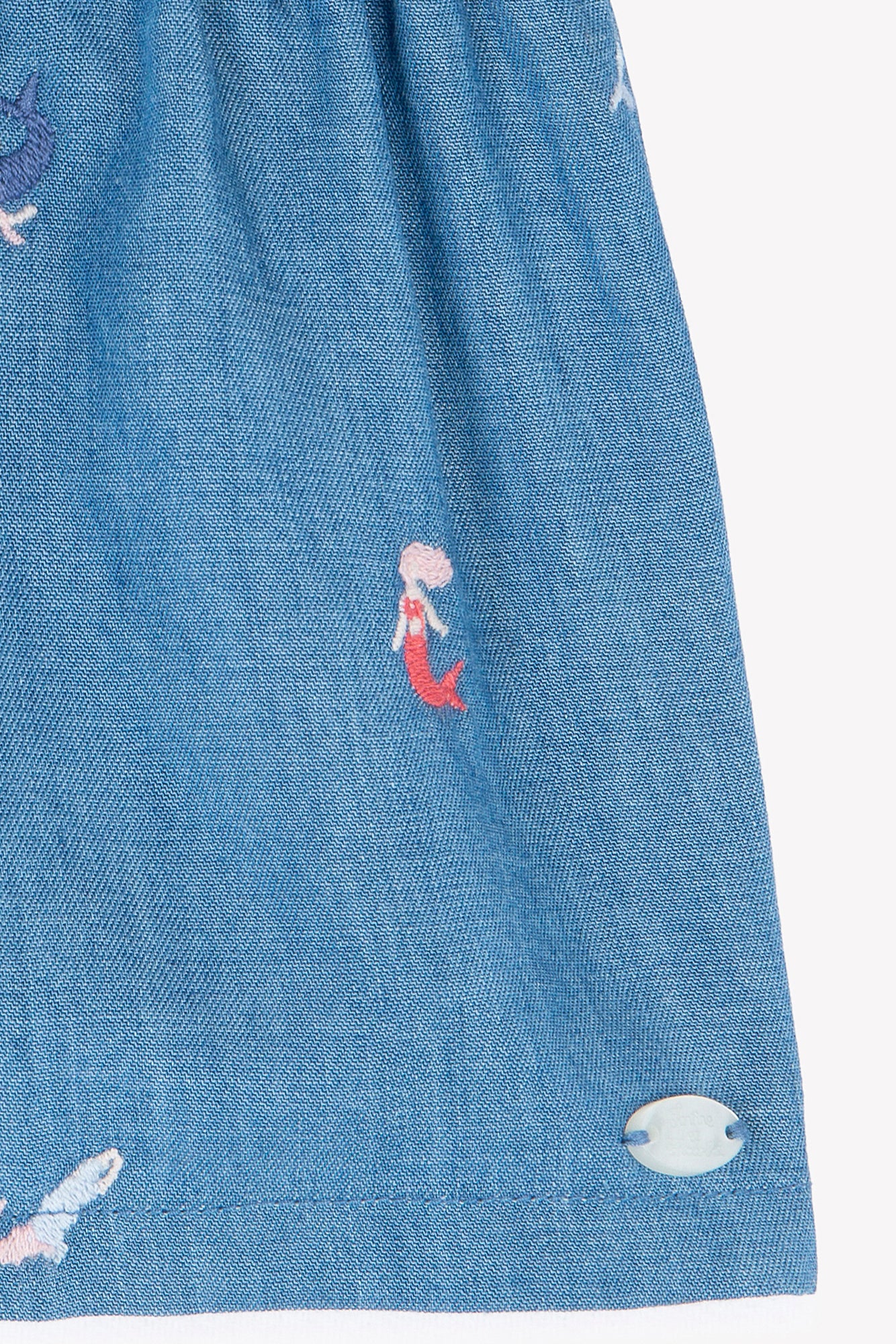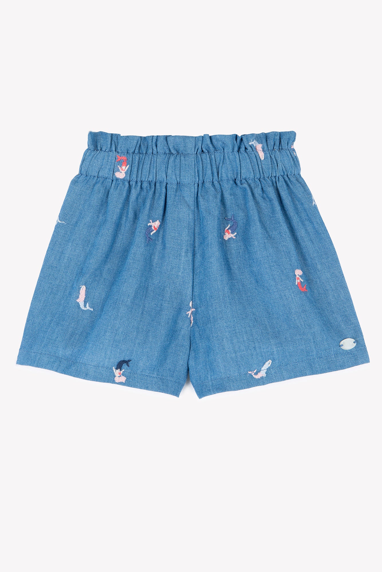 Ce short indigo pour bébé fille, orné de délicates broderies de sirènes multicolores, apporte une touche ludique et poétique à sa tenue. Avec sa taille élastique, il assure un confort optimal. On aime l’associer à un body ou un t-shirt de la même collection pour un look estival harmonieux et raffiné. CA26041-46