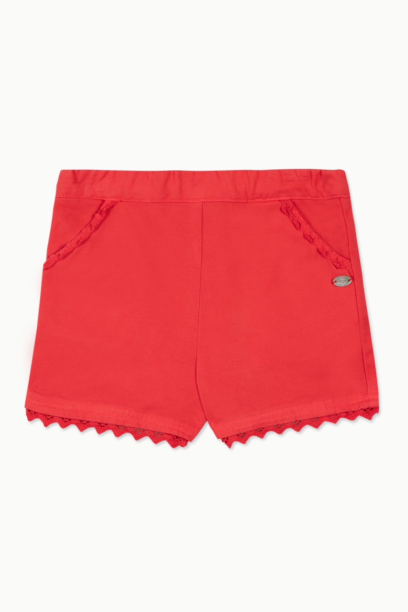 Elégant et sobre, ce joli short rouge en coton sera un indispensable de la garde robe de votre petite princesse en cette saison. Souple et agréable grâce à son mélange de matière, ce short est conçu pour apporter la légèreté et le confort nécessaire à chaque journée. On craque sur ses détails crochetés au niveau des cuisses et des poches décoratives mais aussi sur sa taille élastiquée. On aime le porter avec un adorable t-shirt de la même collection pour un total look irrésistible.