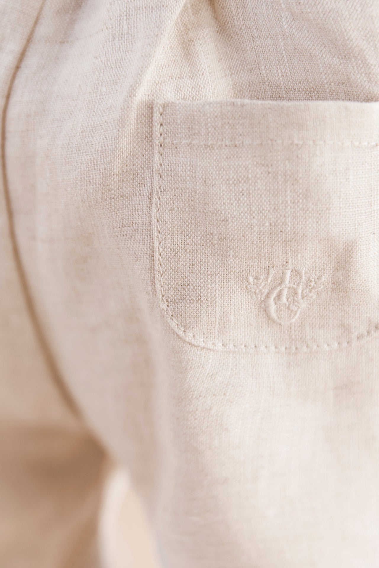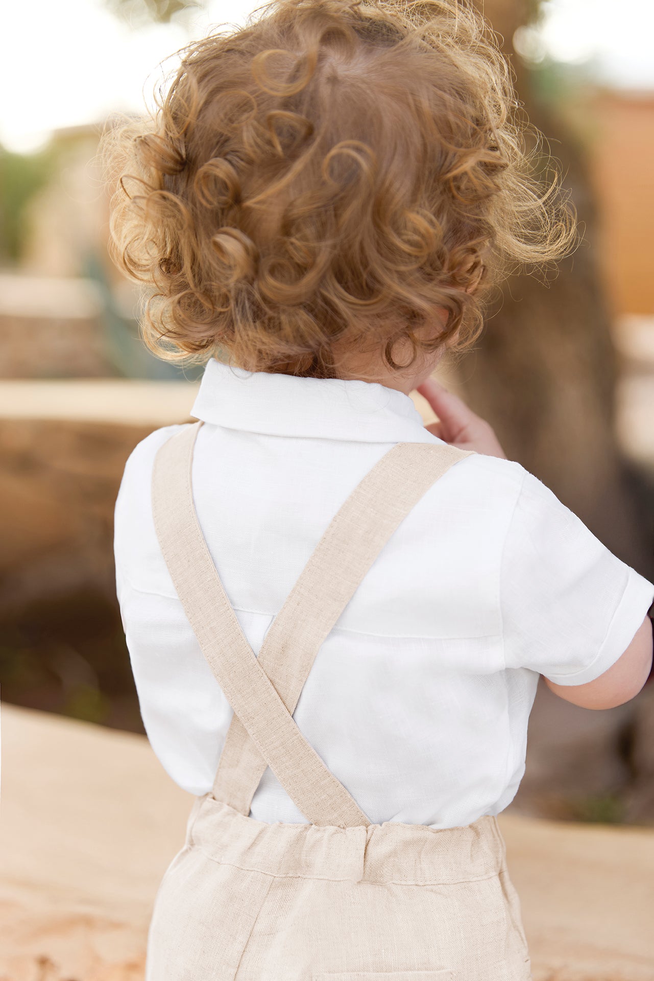 Ce pantalon en lin sable chiné avec bretelles est le choix parfait pour les cérémonies et les occasions spéciales. Élégant et confortable, il habille bébé garçon avec une touche de sophistication. Sa couleur intemporelle et sa coupe soignée en font une pièce incontournable, à associer avec un body ou une chemise pour un look chic et harmonieux. CA22051-17