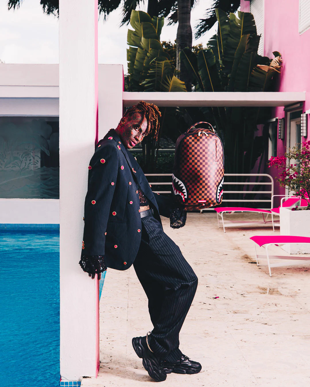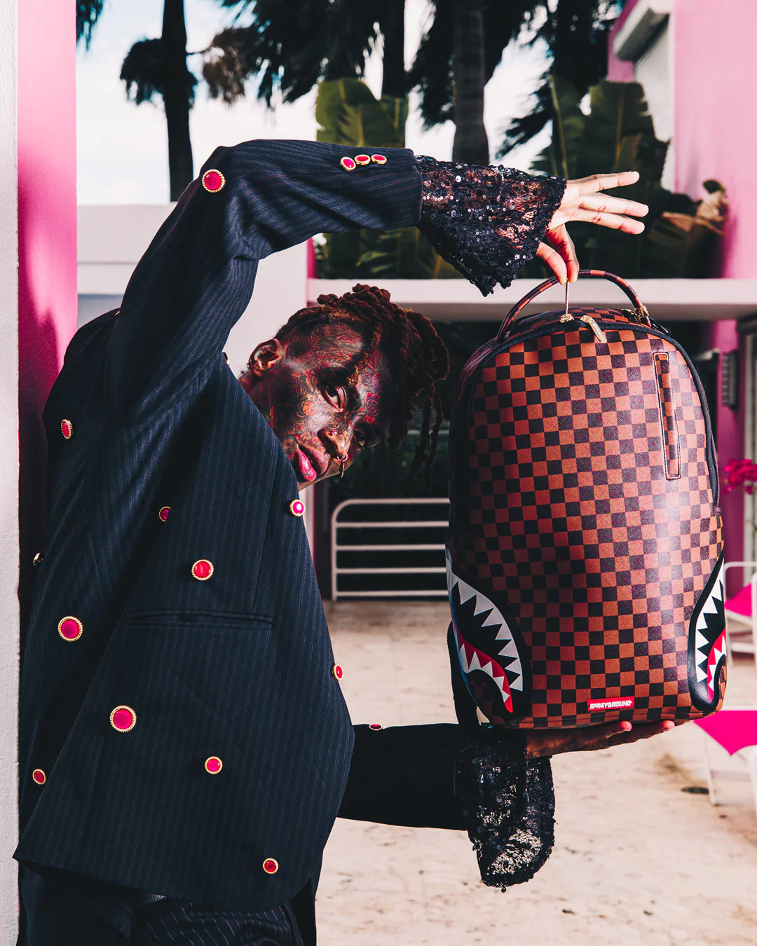 Dimensions: 18″ x 6″ x 11.5″ • Front zipper pocket • Side pockets • Zippered Stash pocket • Separate velour sunglass compartment • Ergonomic mesh back padding • Adjustable Straps for custom sizing • Gold zippers with metal hardware • Metal « Sprayground Authentic » badge • Slide through back sleeve connects to carry-on luggage to free your hands