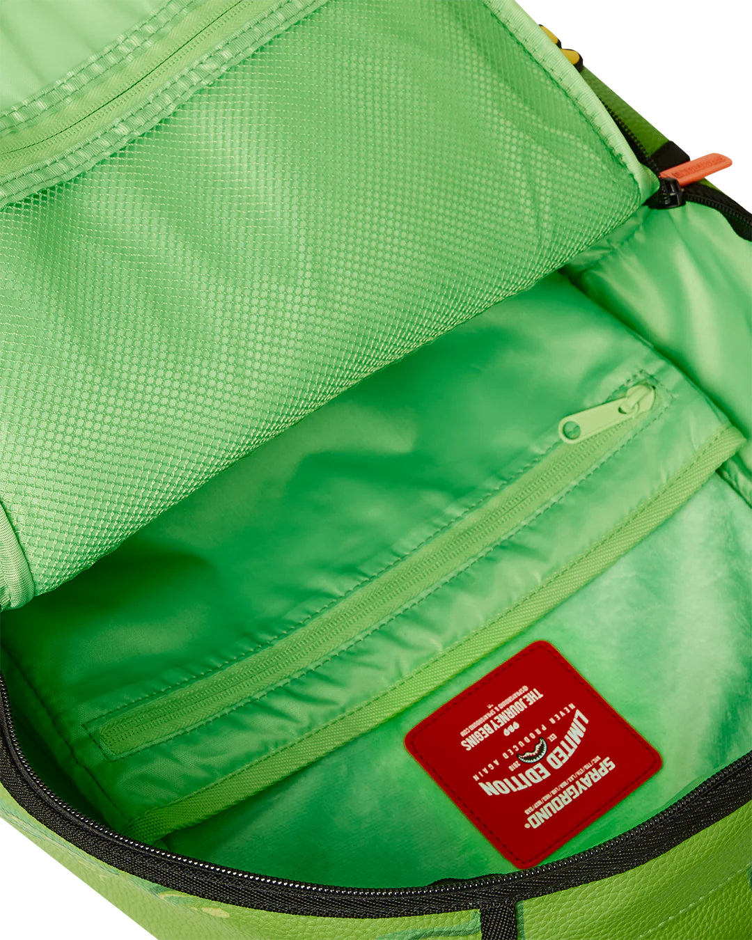 Dimensions: 18″ x 6″ x 11.5″ • Front zipper pocket • Side pockets • Zippered Stash pocket • Separate velour sunglass compartment • Ergonomic mesh back padding • Adjustable Straps for custom sizing • Gold zippers with metal hardware • Metal « Sprayground Authentic » badge • Slide through back sleeve connects to carry-on luggage to free your hands