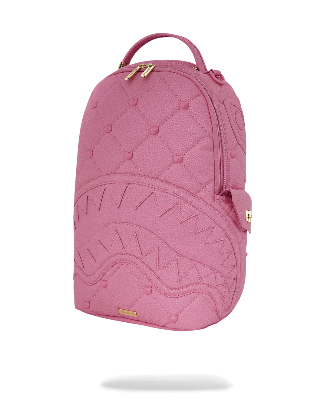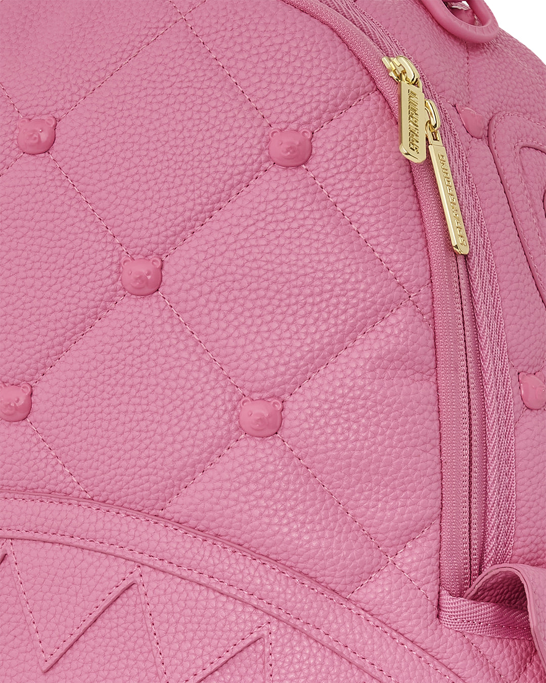 Pink quilted with bear face studs. Pink enamel & gold hardware details