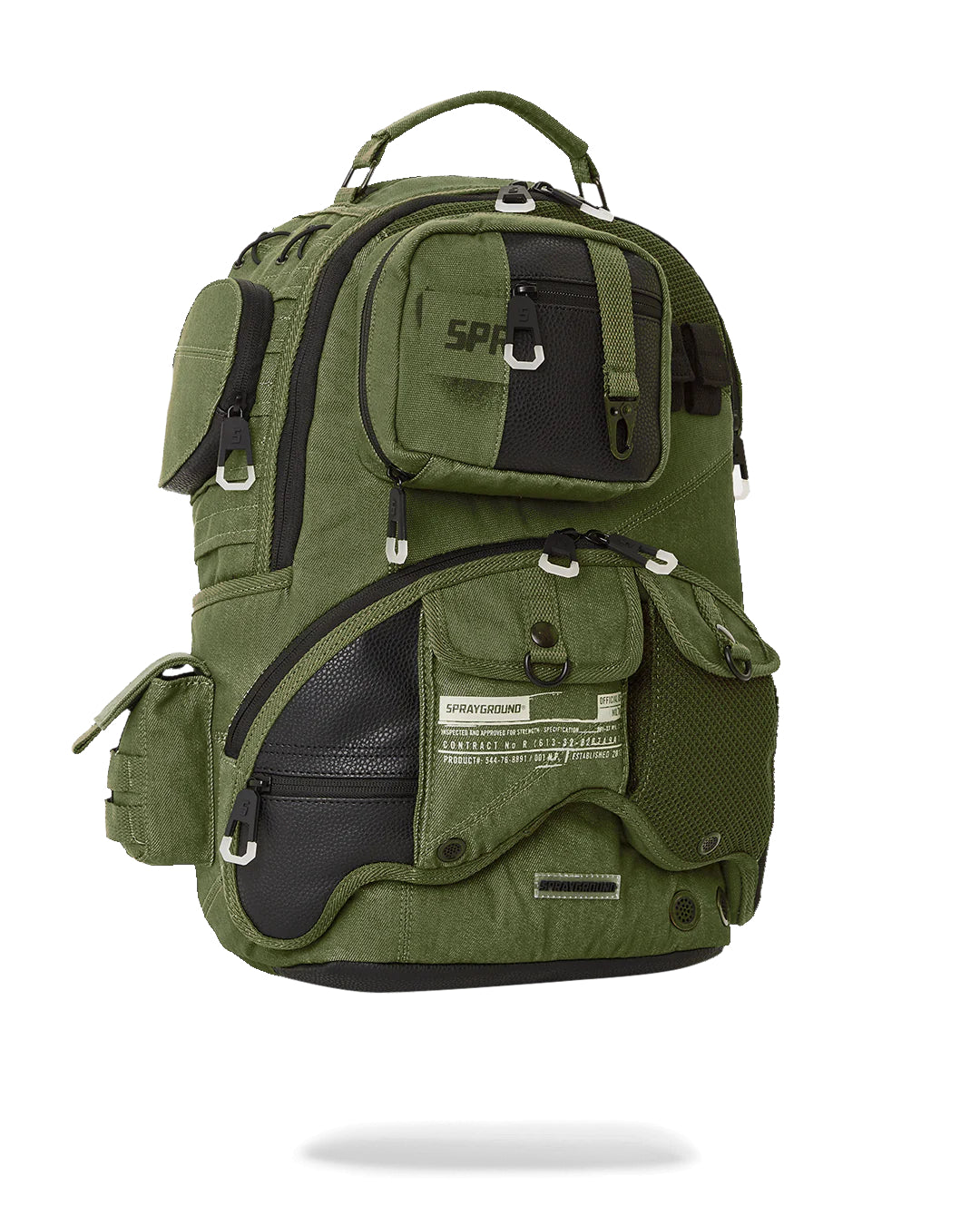 Dimensions: 18″ x 6″ x 11.5″ • Front zipper pocket • Side pockets • Zippered Stash pocket • Separate velour sunglass compartment • Ergonomic mesh back padding • Adjustable Straps for custom sizing • Gold zippers with metal hardware • Metal « Sprayground Authentic » badge • Slide through back sleeve connects to carry-on luggage to free your hands