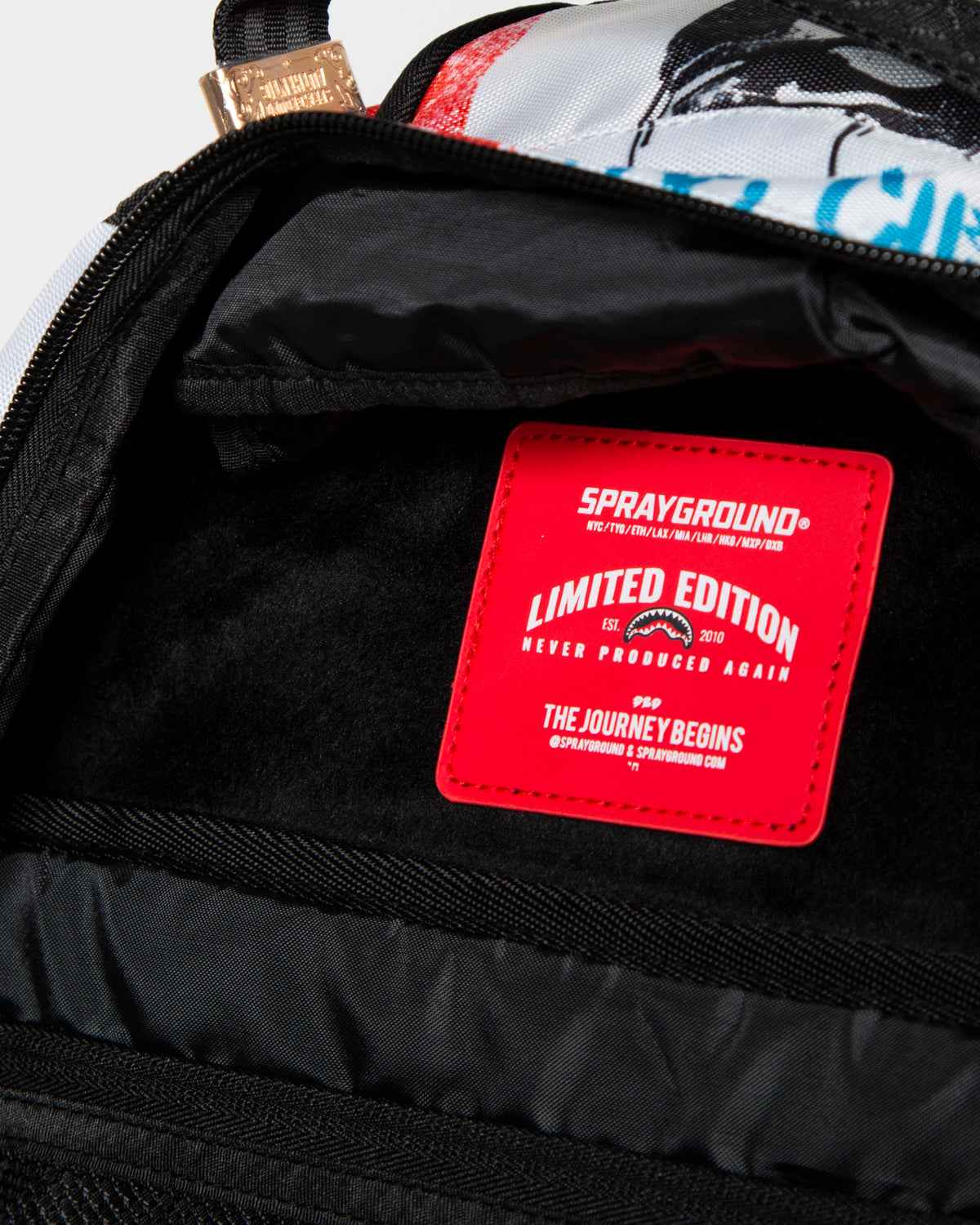 Dimensions: 18″ x 6″ x 11.5″ • Front zipper pocket • Side pockets • Zippered Stash pocket • Separate velour sunglass compartment • Ergonomic mesh back padding • Adjustable Straps for custom sizing • Gold zippers with metal hardware • Metal « Sprayground Authentic » badge • Slide through back sleeve connects to carry-on luggage to free your hands