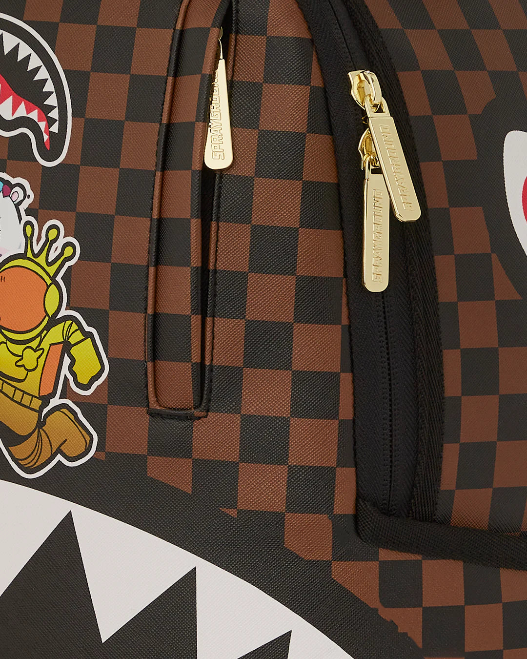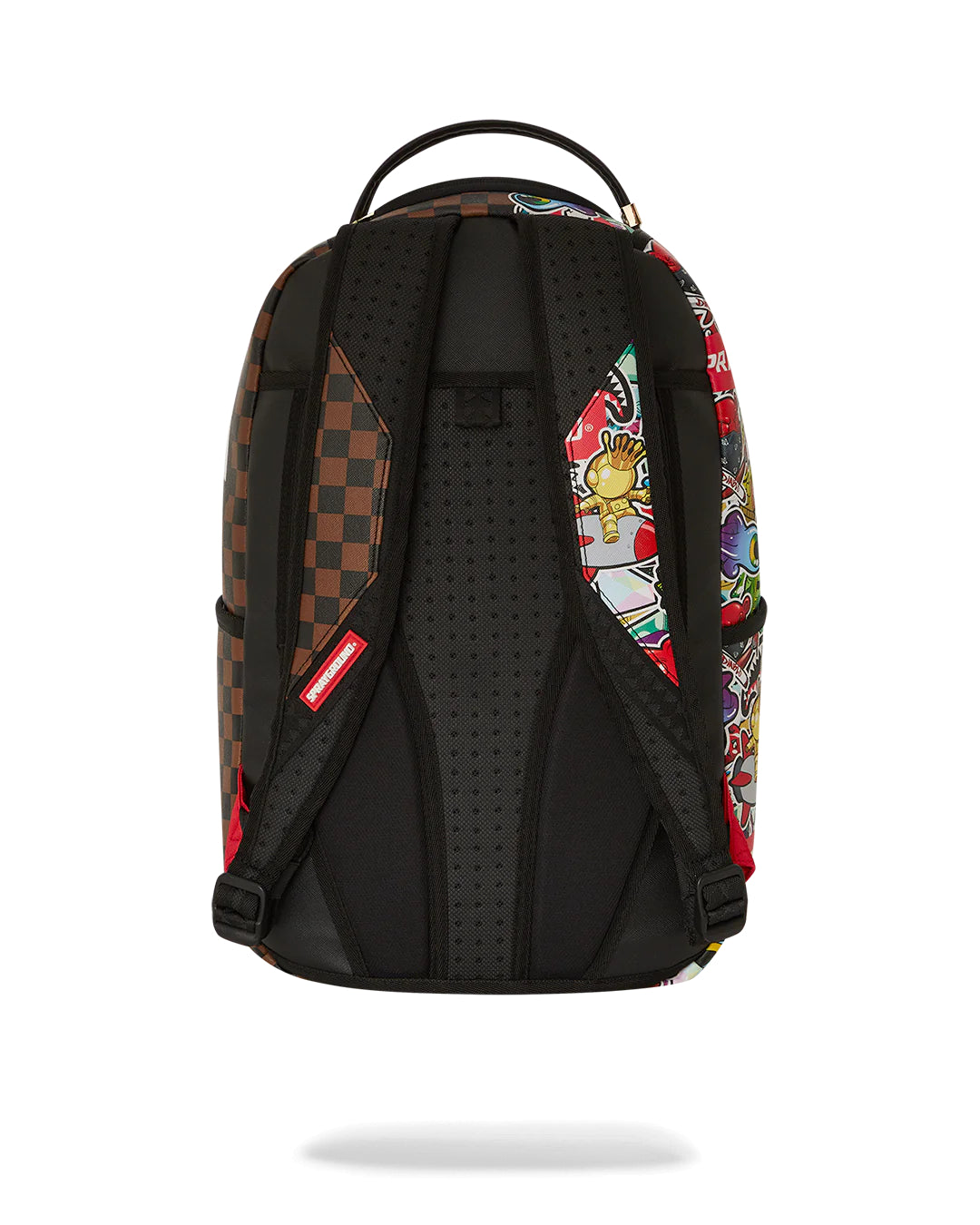 Dimensions: 18″ x 6″ x 11.5″ • Front zipper pocket • Side pockets • Zippered Stash pocket • Separate velour sunglass compartment • Ergonomic mesh back padding • Adjustable Straps for custom sizing • Gold zippers with metal hardware • Metal « Sprayground Authentic » badge • Slide through back sleeve connects to carry-on luggage to free your hands