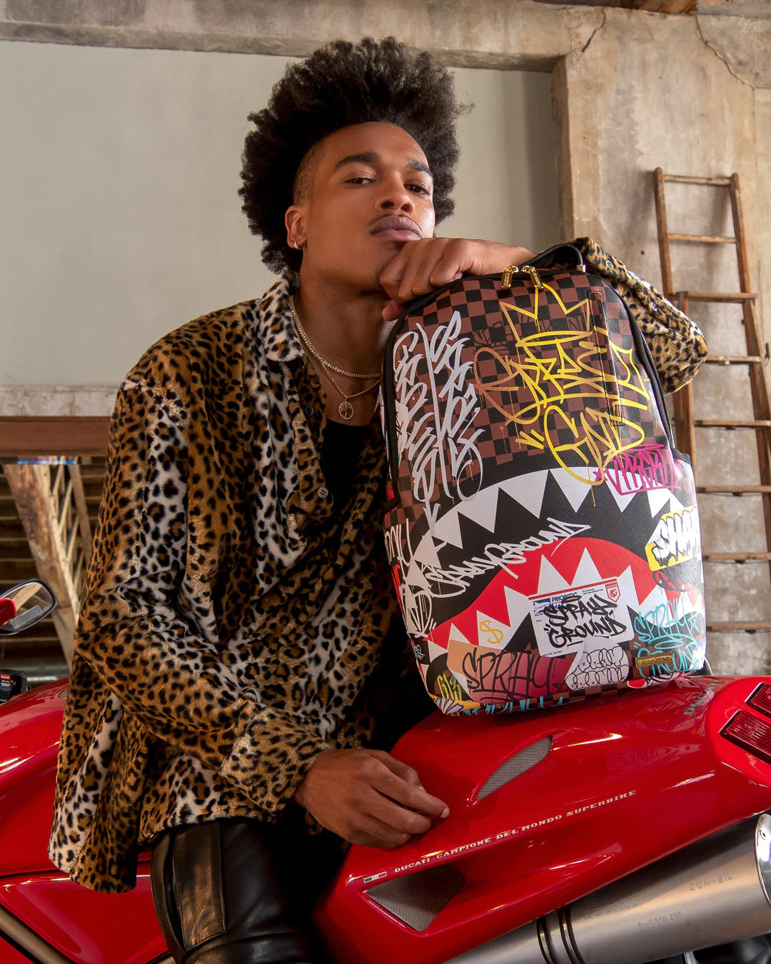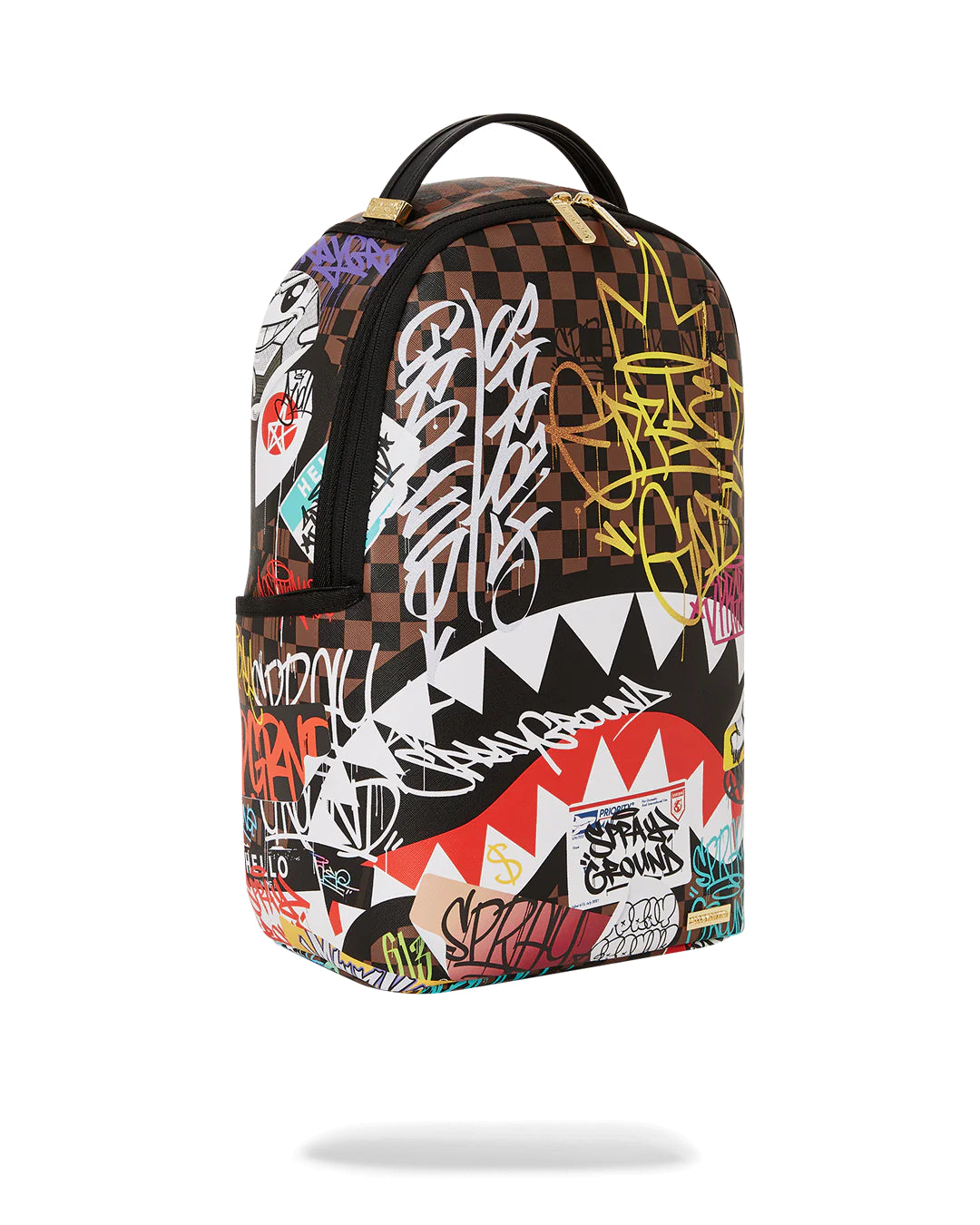 Dimensions: 18″ x 6″ x 11.5″ • Front zipper pocket • Side pockets • Zippered Stash pocket • Separate velour sunglass compartment • Ergonomic mesh back padding • Adjustable Straps for custom sizing • Gold zippers with metal hardware • Metal « Sprayground Authentic » badge • Slide through back sleeve connects to carry-on luggage to free your hands