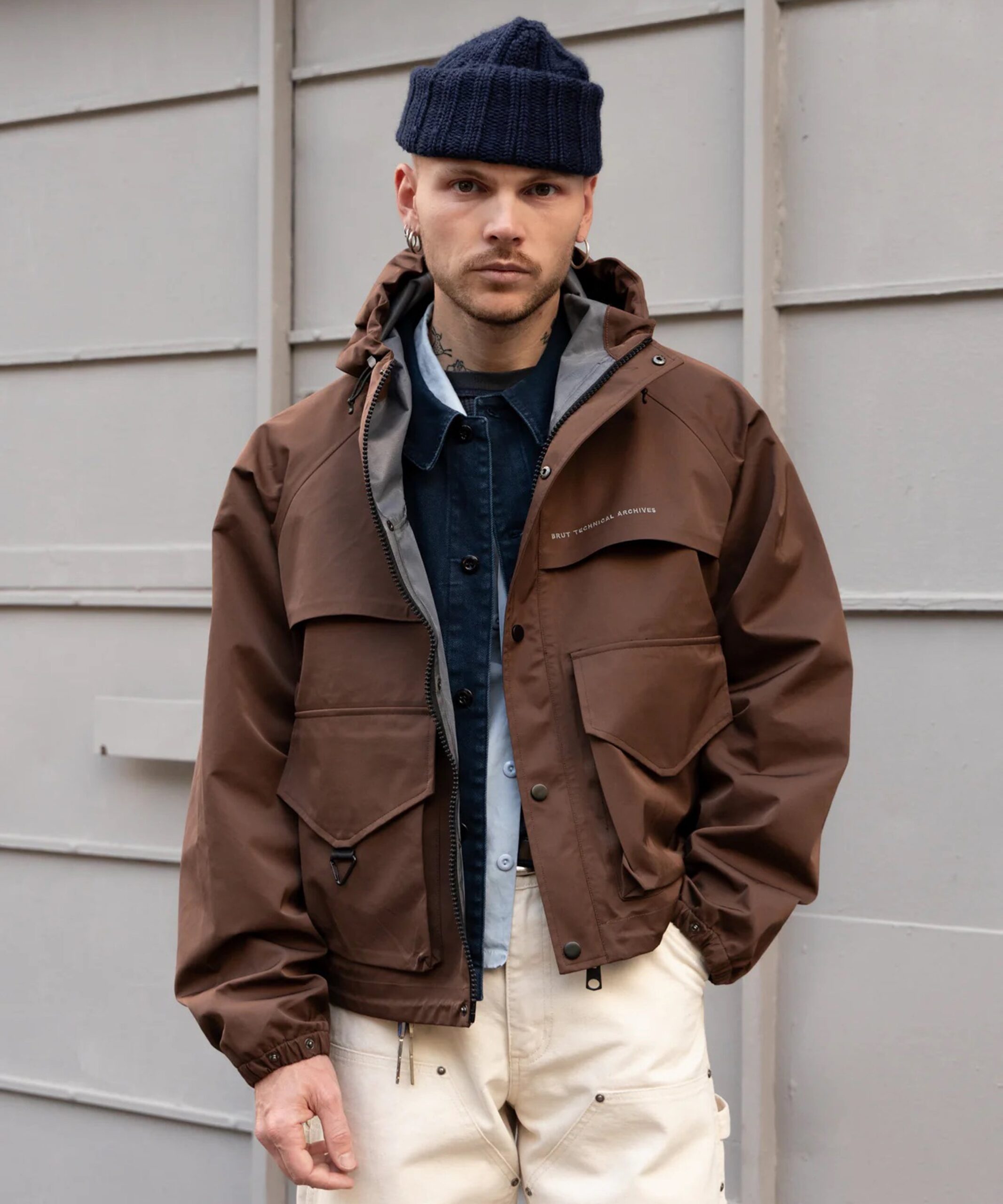 Technical reinterpretation from our vintage archives. The RAIN CROPPED JACKET is crafted from waterproof 3 layers fabric. Hidden air vents make this jacket not only waterproof and windproof, but also highly breathable.
